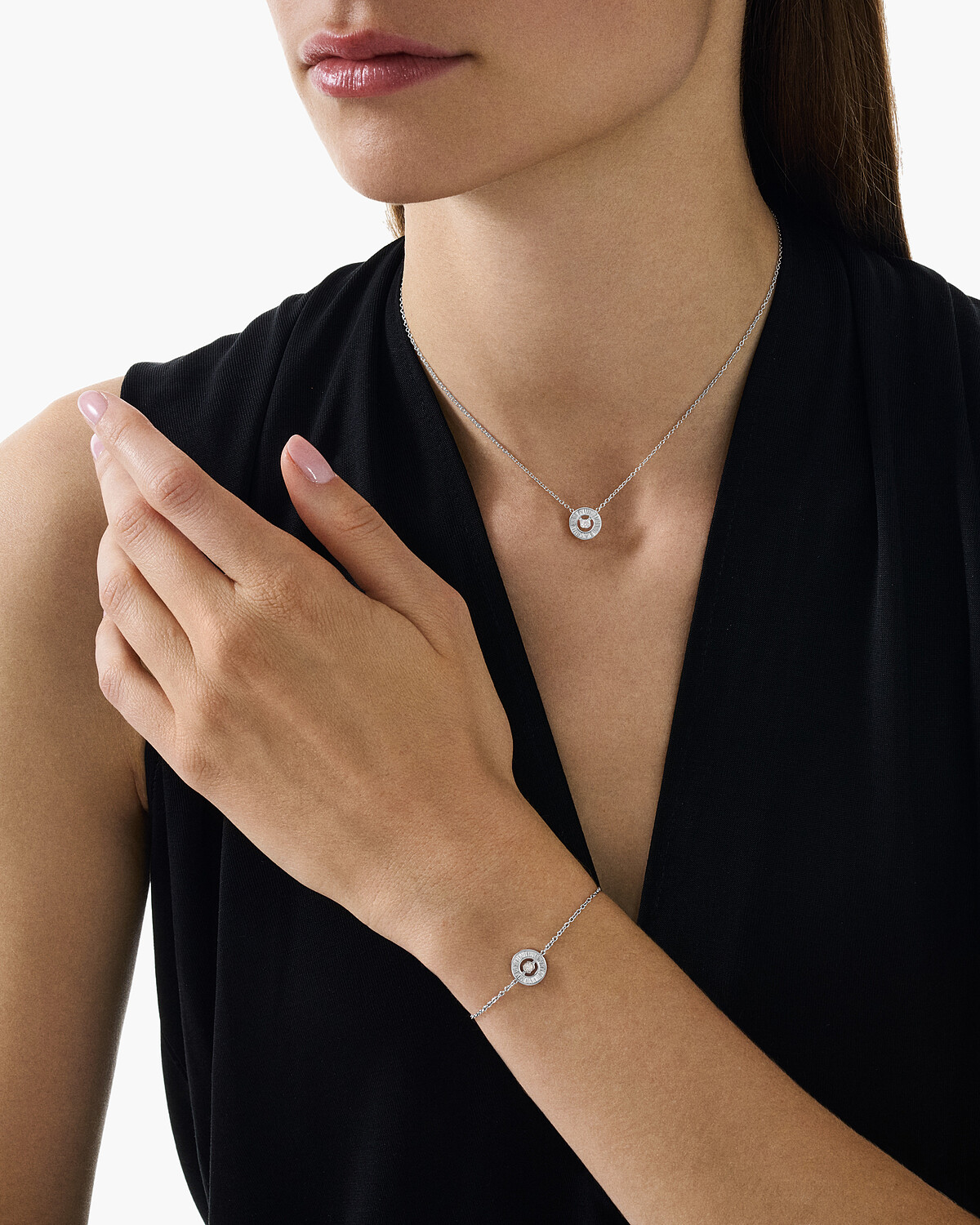 RUBAN 項鍊(上) 18K 白金鑲嵌鑽石, 建議售價 NTD 331,000 元 。 ETERNAL N°5 項鍊(下) 18K 白金鑲嵌鑽石, 建議售價NTD 336,000 元