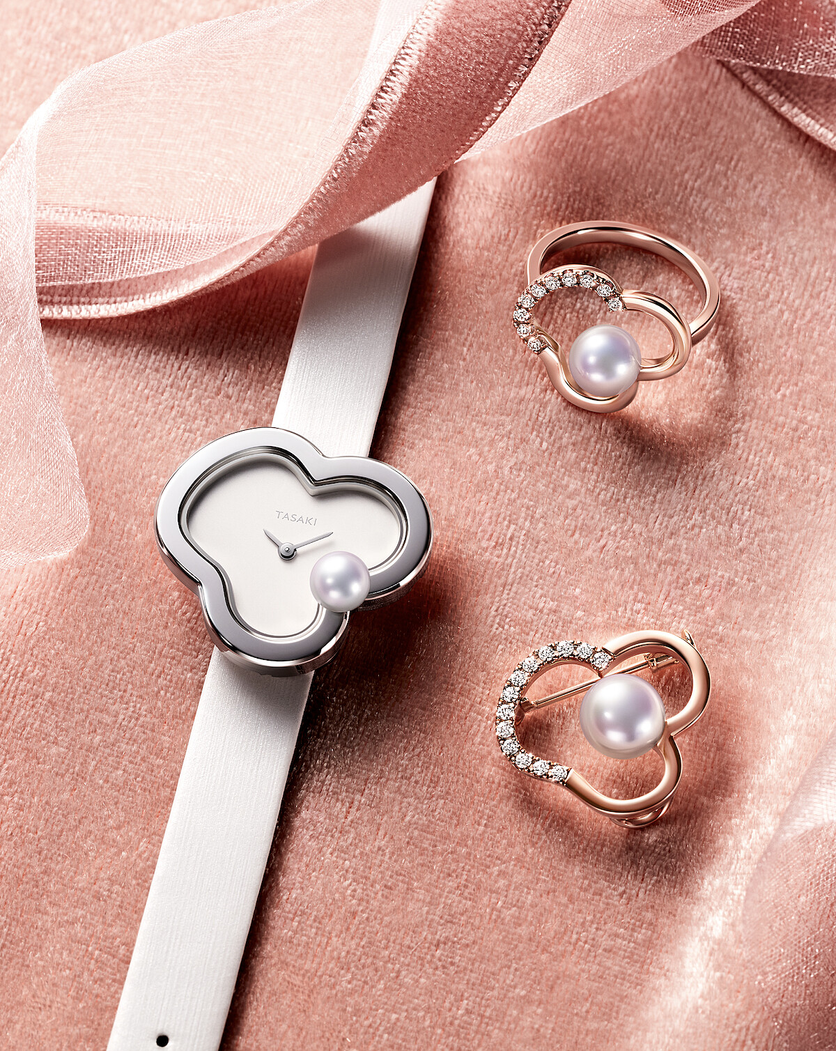 TASAKI以珠寶迎接節慶季節:推出多款節慶限定新品,特別推薦品牌代表性系列 「chants」,以洗鍊線條勾勒溫柔花卉,鑲嵌珍珠和鑽石,其低調又精緻的存在感,疊搭腕錶或既有飾品,皆能為個人造型增添一筆恰到好處的亮點。
