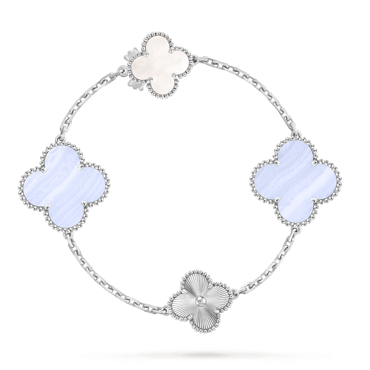 Magic Alhambra可轉換式長項鍊,15枚四葉幸運圖騰 (轉換短項鍊)_18K白金,鑲嵌玉髓及白色珍珠母貝,建議售價:NT$1,280,000