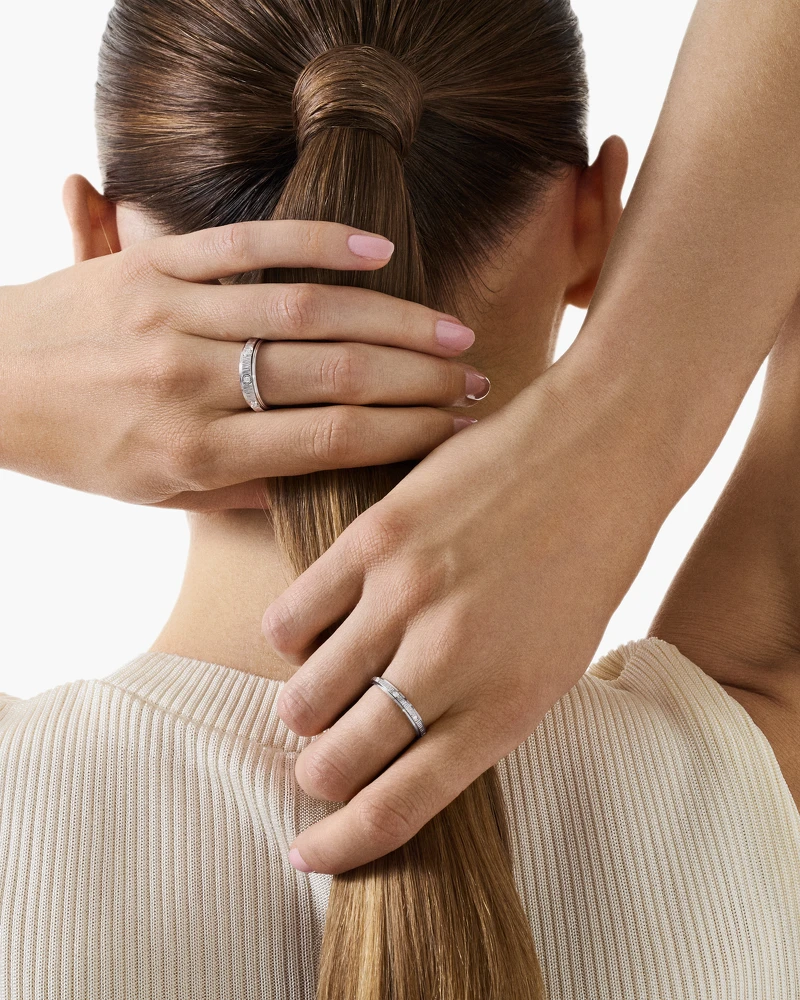 ETERNAL N°5 戒指 18K 白金鑲嵌鑽石,建議售價 NTD 325,000 元 。 COCO CRUSH窄版戒指 18K 白金鑲嵌鑽石,建議售價 NTD 158,000 元