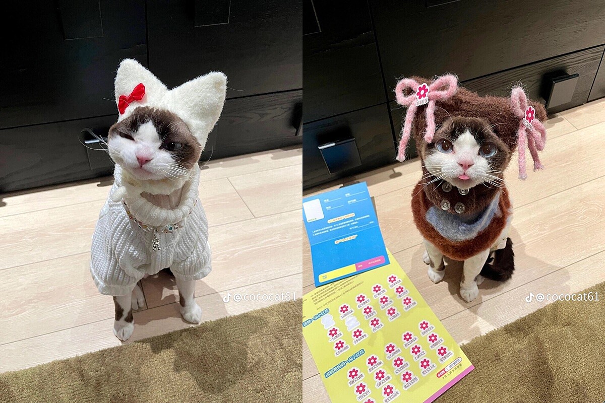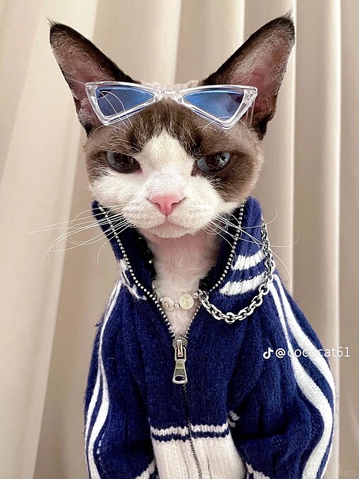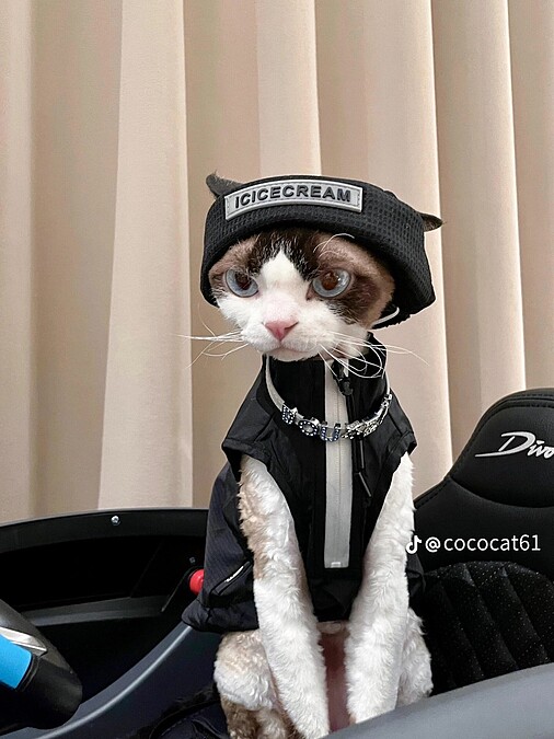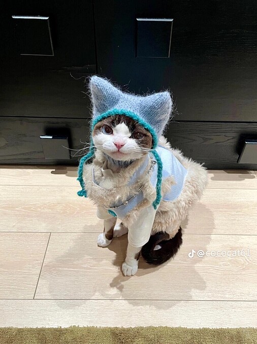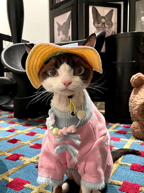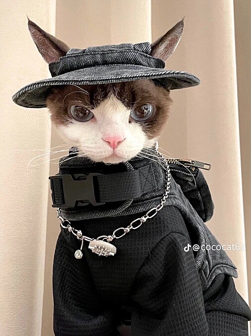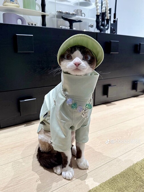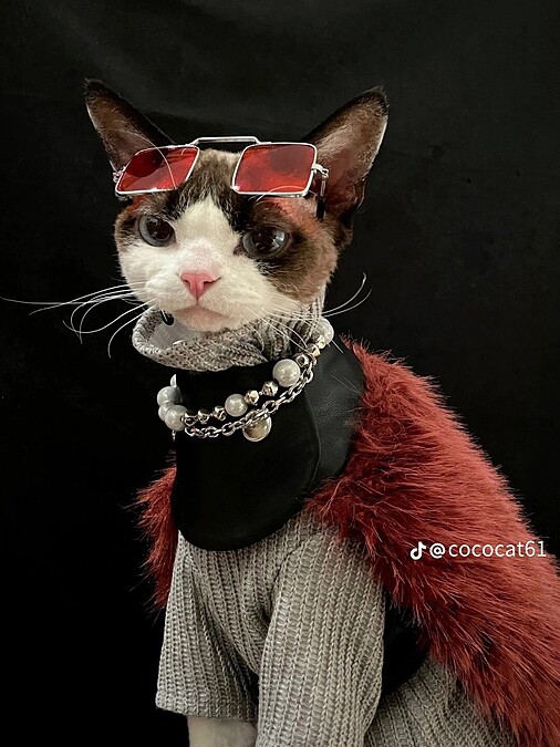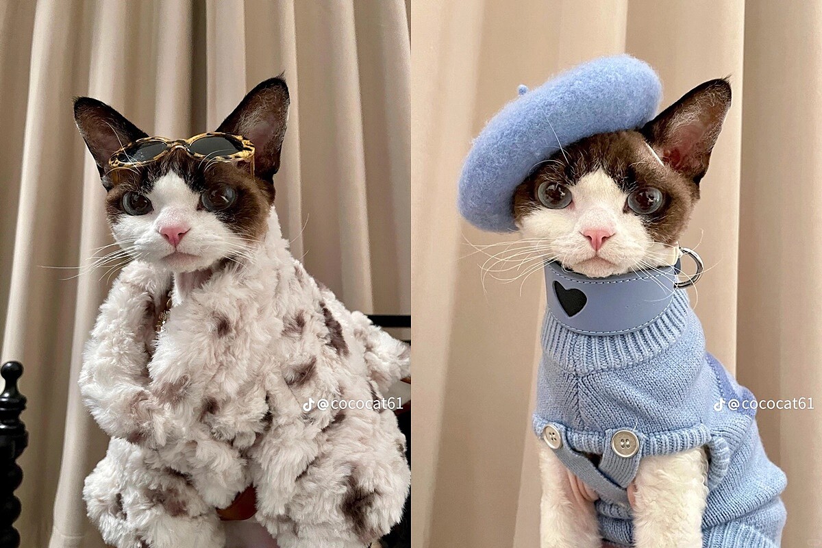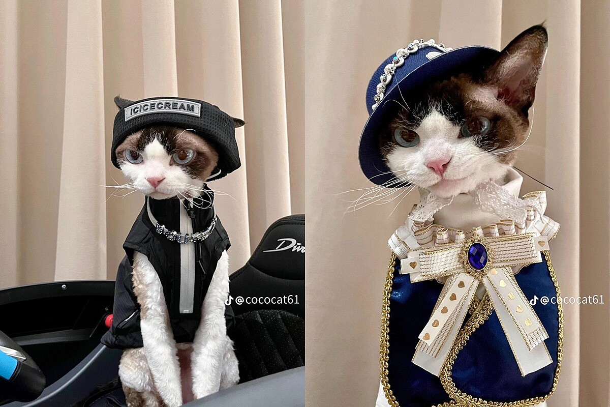 現代人養寵物甚至比養自己還用心,不僅是在伙食上毫不手軟,許多人更喜歡為毛孩準備各式各樣的華服美衣,在TikTok上就有一隻時尚小貓吸引編輯注意,由帳號@cococat61經營的版面上有隻叫做Coco的小貓,是一隻德文捲毛貓,招牌的捲捲毛配上藍眼睛和小臉、大耳朵,像小精靈一樣充滿靈氣,光是這高顏值臉蛋就已經夠萌了,他的主人更把他打扮成一隻時髦小貓!