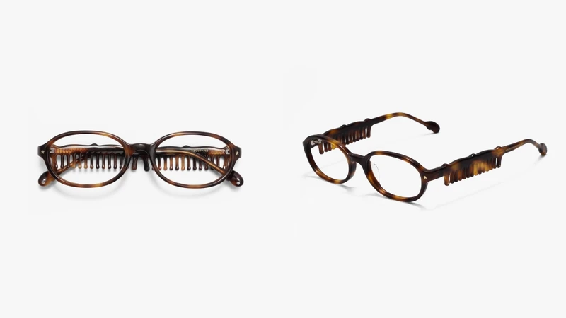 將日常看到的扁梳放大梳齒比例變成鏡腳,視覺吸睛卻仍保留可日常駕馭的圓潤琥珀框,推出墨鏡與抗藍光版本,造型與實用性兼具!