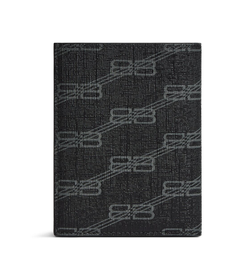 Balenciaga BB 字母垂直款對折皮夾(黑灰)