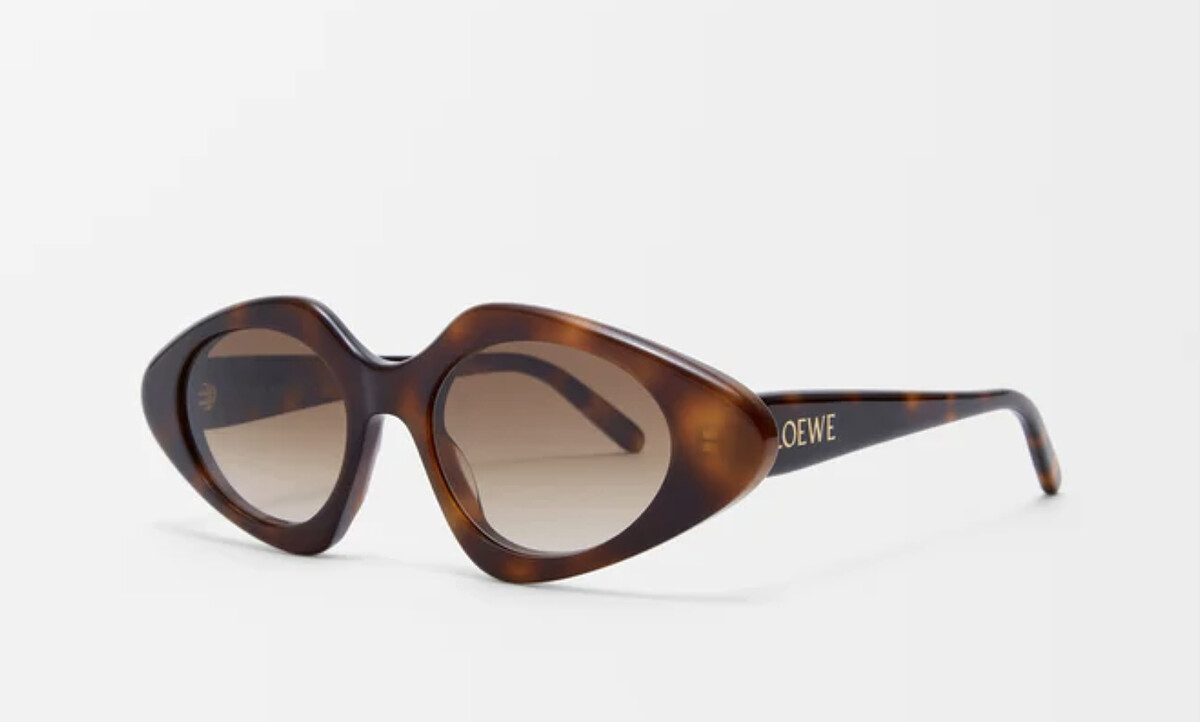 玳瑁鏡框結合Loewe金屬細節,是今年最受時尚圈喜愛的選擇,而微貓眼 × 幾何眼鏡線條,搭配100% UVA/UVB 防護,時髦又實用。