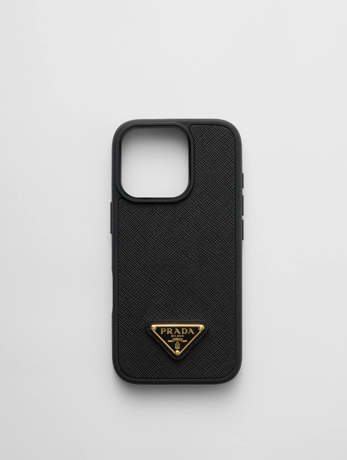經典 Saffiano 皮革包覆,裝飾搪瓷金屬三角標誌。風格俐落、抓感極佳,是精品手機殼裡極具質感的一款。