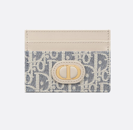 藍色 Dior Oblique 以「仿拉菲草刺繡」呈現輕盈纖維質地,搭配淺餅乾棕色小牛皮與 CD Logo,擁有五個卡層,精巧時髦又實用。