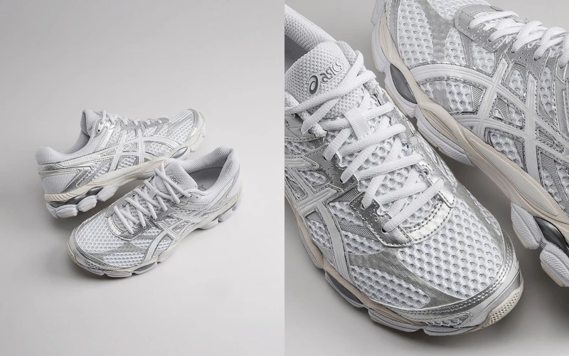 GEL-CUMULUS 16 以銀白作為主視覺,將清透網布、金屬亮面與流線結構相互交織,呈現輕盈卻具未來感的冬季視覺。柔和奶油色中底提升整體暖度,讓鞋款在冷冽銀白調性中依然保有舒適與柔和氣息。經典復古跑鞋輪廓搭配細節亮點,使其既適合節慶派對,也能完美融入暖色系冬裝,是最好駕馭的銀白金屬風格鞋款之一。