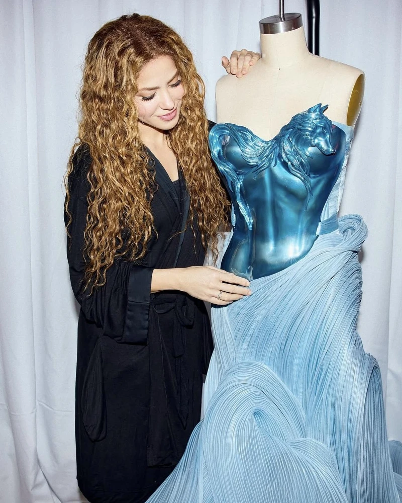 此站巡演中,夏奇拉穿上印度當代高訂設計師 Gaurav Gupta的作品,以冰藍色雕塑感禮服為主造型之一。