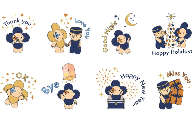 路易威登Louis Vuitton在年末時刻奉上了全新的佳節限定貼圖系列,主角為品牌吉祥物Vivienne小花,以及以第三代傳人Gaston-Louis Vuitton為原型的角色Gaston,作為小花的夥伴,一起配上Thank You、Love You、Good Night、Happy Holidays、OK、Bye、Happy New Year、Miss You,總共8張實用可愛的貼圖,這回設計特別生動療癒,用於傳遞歡樂的心情再適合不過!