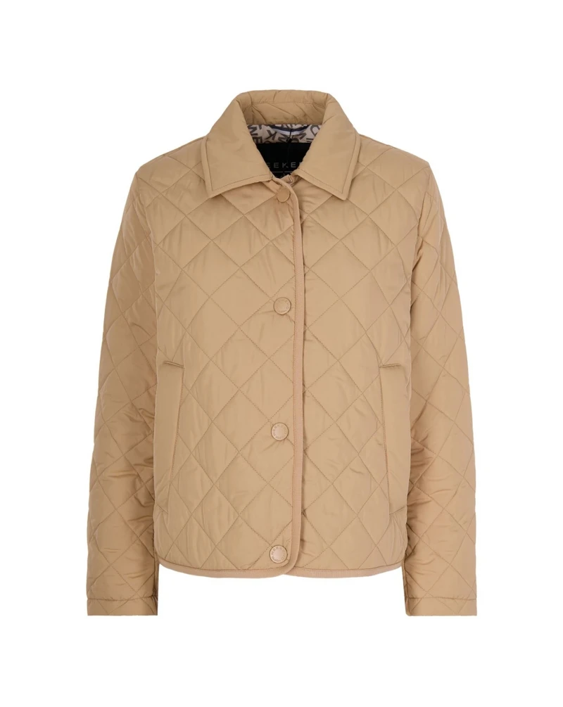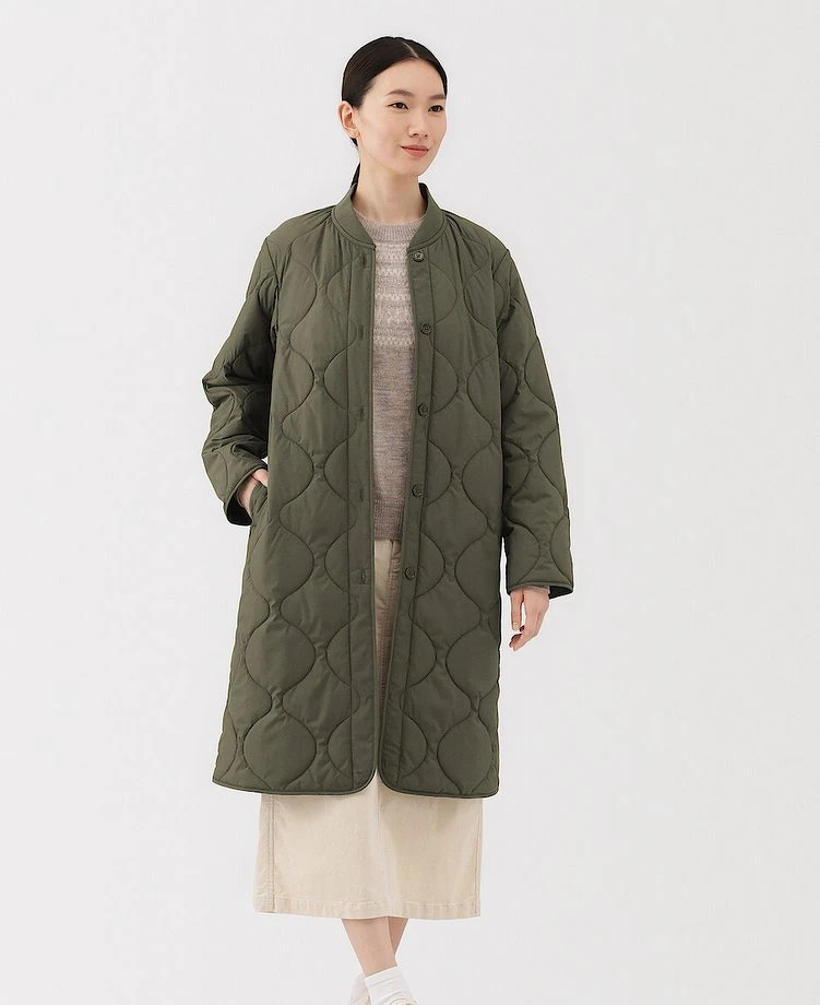 絎縫外套(Quilted Jacket)指的是將表布、填充層與內裡透過縫線固定的外套設計,常見圖案包括菱格、直線或波浪紋,這樣的結構不只讓內裡的填充物分布均勻,也能在視覺上展現規律線條,即使有厚度,看起來依然俐落、不顯膨,以實際穿著經驗來看,絎縫外套最大的優點在於「輕暖不悶」,特別適合台灣秋冬或早春微涼的氣候,一件就能應付通勤、外出與旅行需求!
