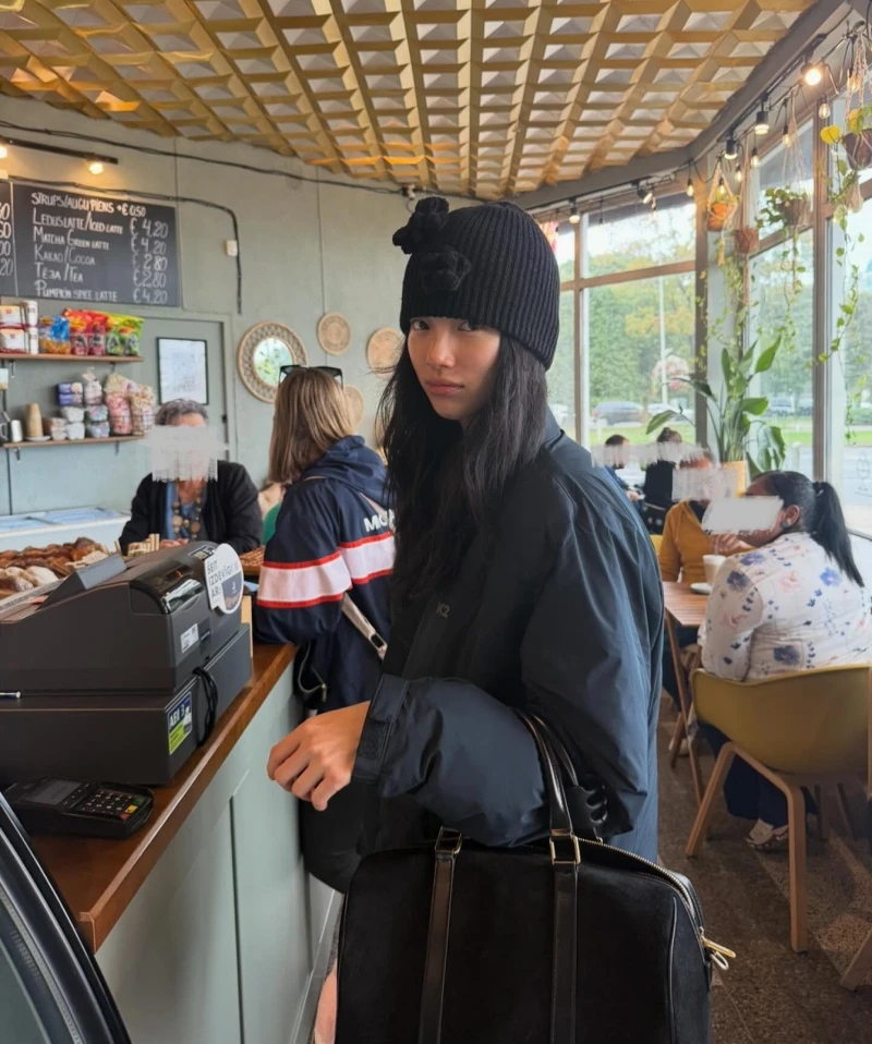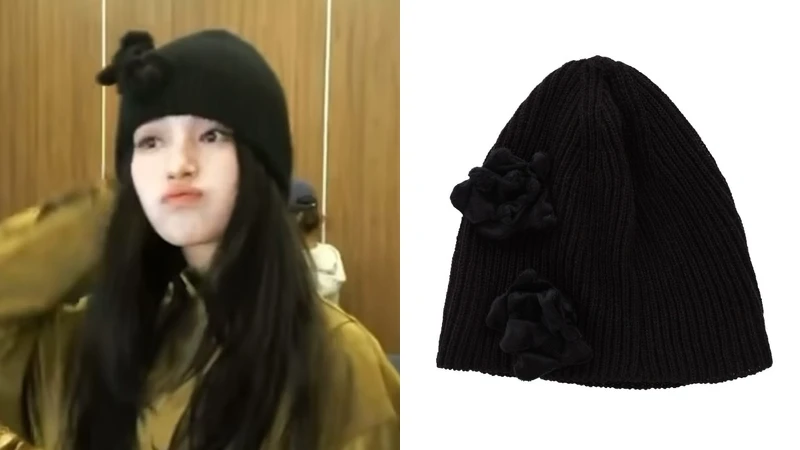 除了羽絨外套之外,當然也不能露了秀智近期非常愛用的小花針織毛帽,今年冬季這種有著立體、金屬裝飾的毛帽非常受到韓國女生歡迎,秀智戴的這一款立體小花裝飾的黑色針織帽是手工針織獨立品牌YOUYOUNG推出的客製化設計,目前品牌並沒有官網,如果想購買建議私訊帳號溝通訂購。