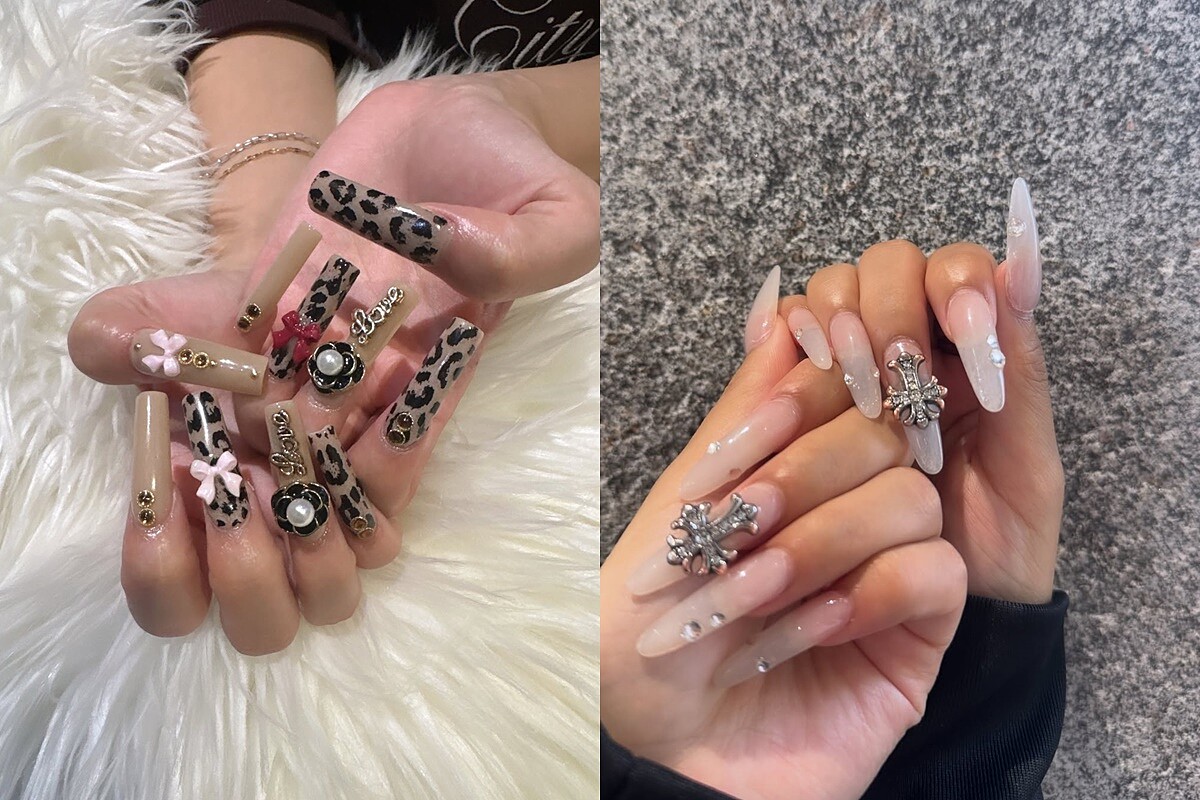 澀谷辣妹的特色包括濃艷的妝容、小麥膚色、歐美裸唇……還有最重要的就是超長美甲!觀察小綺的美甲會發現,她更喜歡複雜、搶眼、華麗的款式,且必定會加入立體的裝飾,而每回新甲的共通點,正是選用超長的延甲!