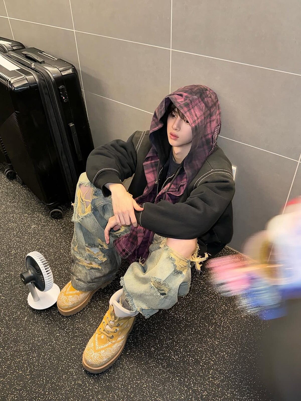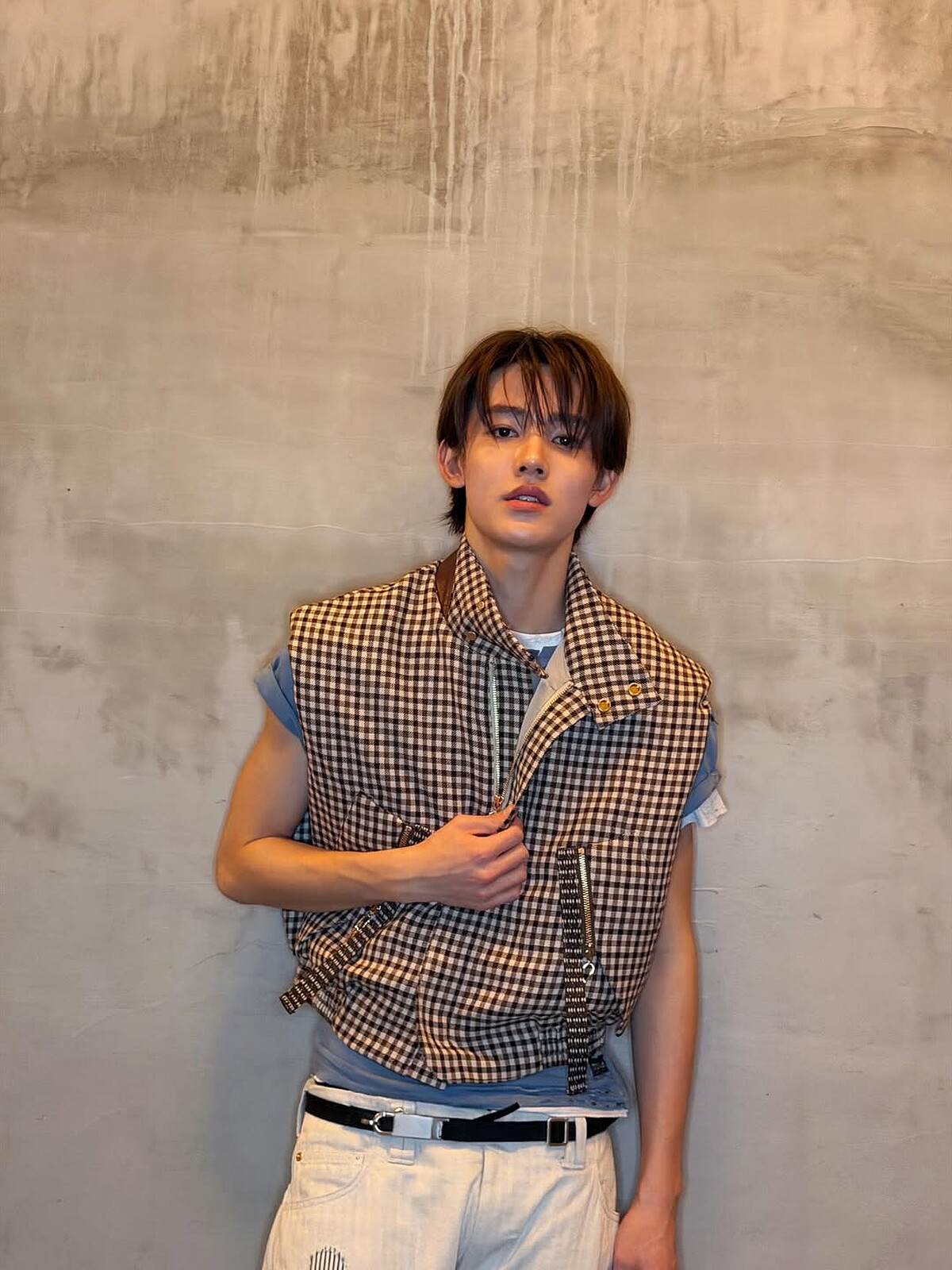 CORTIS成員穿搭: 同樣是帶著一點90年代、甚至2000年代的色彩,嚴成玹更靠近Grunge風格,受Grunge樂種影響的時尚美學主打次文化、手作感和反完美主義的叛逆精神。成玹造型中的重點單品如格紋無袖上衣、剪破設計樂團圖T、貼鑽皮帶、寬筒牛仔褲,將看似滿不在乎的破碎感與藏在細節中精緻度對話,呈現著新世紀油漬搖滾的男孩風格。