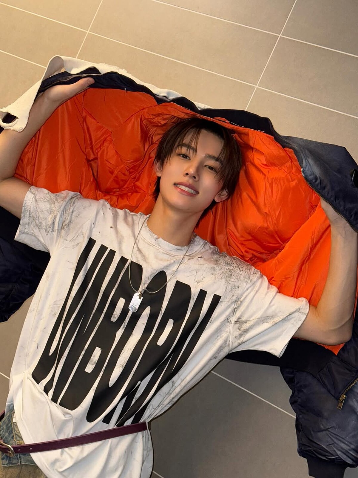 CORTIS成員穿搭: 唱作俱佳的全能成員嚴成玹,造型常常既鮮活又帶著叛逆味,一件刻意作髒設計的寬鬆T恤,也能穿出清新男孩感。