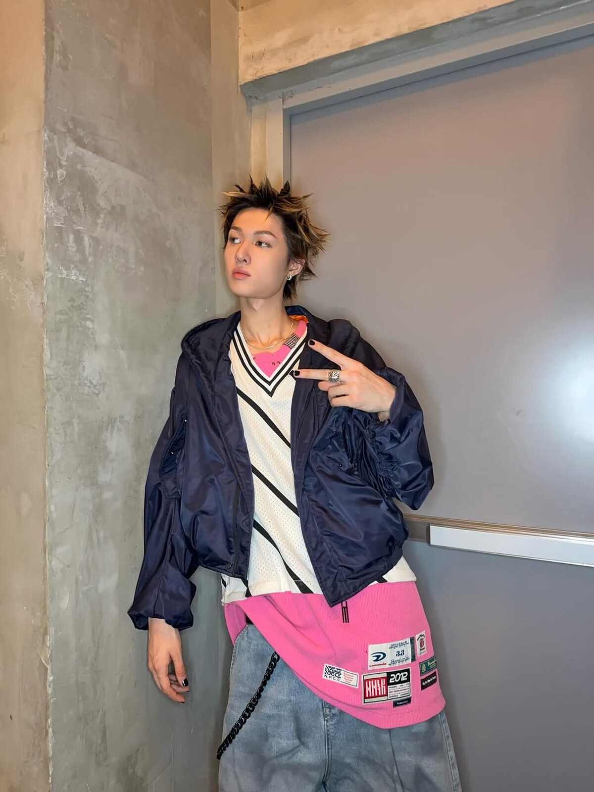 CORTIS成員穿搭:馬丁的穿搭融合90年代的龐克風格與街頭嘻哈穿搭,將兩種不同的潮流美學嫁接,可以在他身上看到呼喚英倫龐克精神的皇家軍裝設計上衣、低腰喇叭褲,也能見尼龍外套、籃球衣、長版T、牛仔垮褲疊穿出美式嘻哈男孩感。