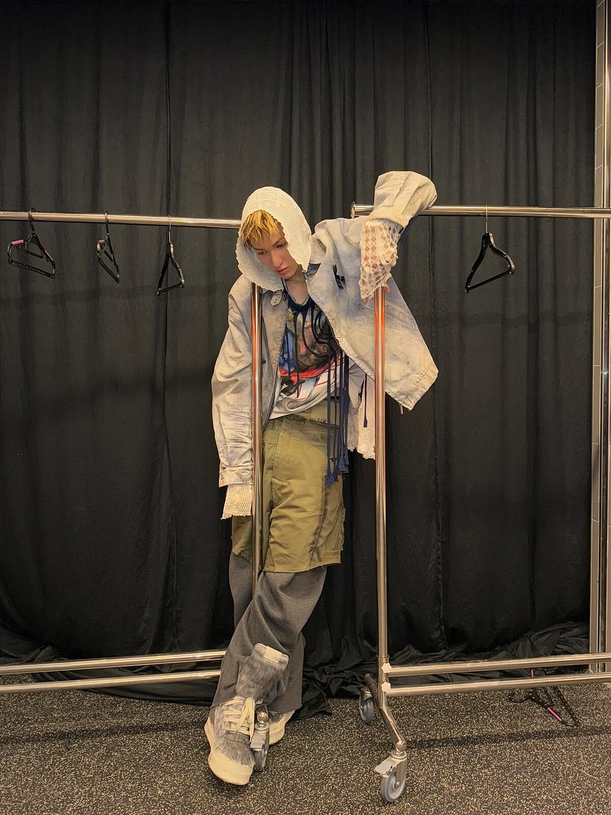 CORTIS成員穿搭:馬丁的穿搭散發張狂不羈的重組精神,這種不受拘束的躁動反叛,正式龐克與嘻哈的共同點,甚至可以看見他疊搭長短褲、牛仔外套內露出鏤空針織外套、多彩圖T,在看似雜亂無章的層次組合中挑戰規則,也展現Z世代跳躍性的穿搭邏輯。