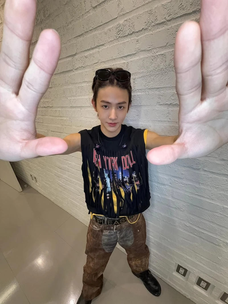 CORTIS成員穿搭: 同樣是帶著一點90年代、甚至2000年代的色彩,嚴成玹更靠近Grunge風格,受Grunge樂種影響的時尚美學主打次文化、手作感和反完美主義的叛逆精神。成玹造型中的重點單品如格紋無袖上衣、剪破設計樂團圖T、貼鑽皮帶、寬筒牛仔褲,將看似滿不在乎的破碎感與藏在細節中精緻度對話,呈現著新世紀油漬搖滾的男孩風格。