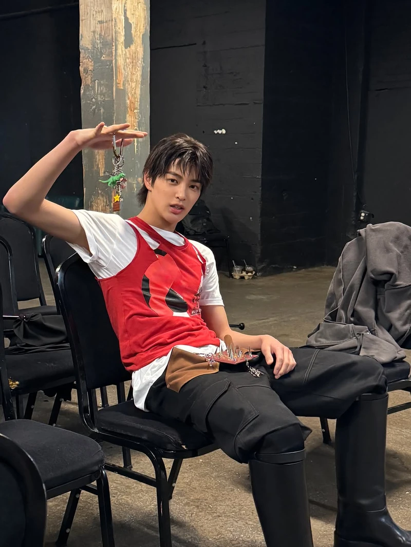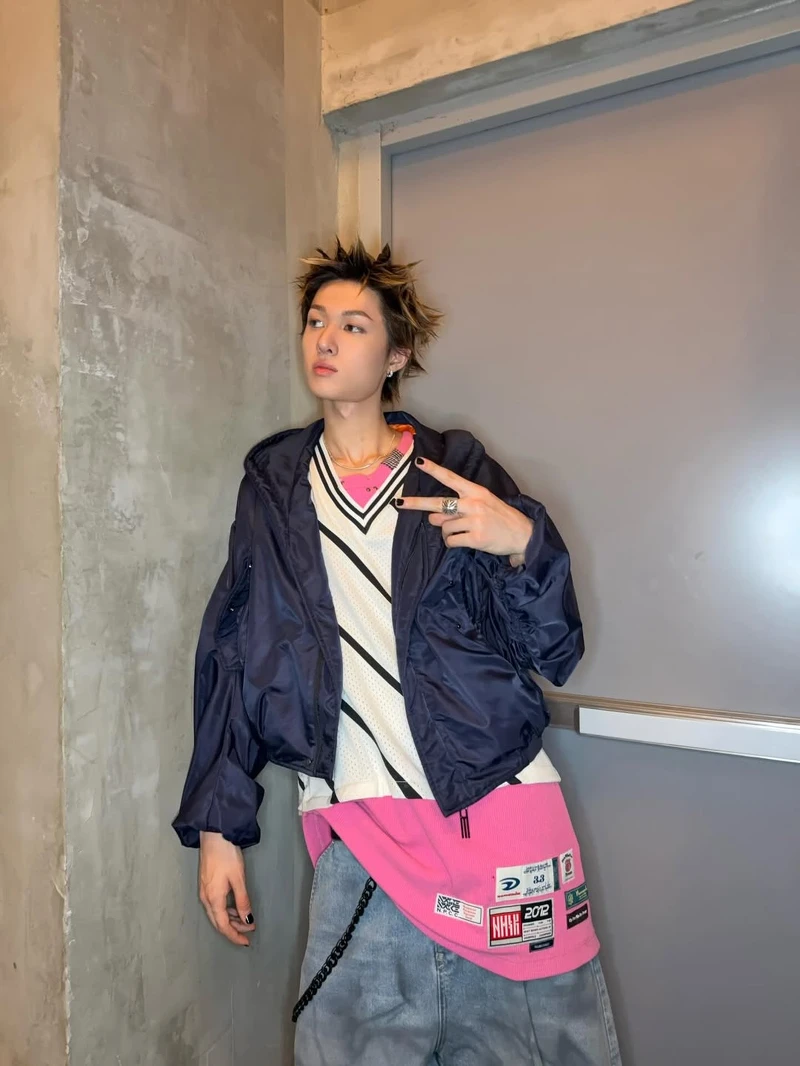 CORTIS成員穿搭:趙雨凡 James的一些造型像是千禧年初日系動漫角色對美式穿著的詮釋,帶有跨文化、跨年代的重組氛圍,混搭80、90年代的風格。無指手套、背心夾克是對80年代搖滾樂隊的重新想像,同時,也可以看見較鬆弛,甚至帶「爹味」的單品如條紋Polo衫和衛衣混搭其中,呈現90年代較為頹敗鬆弛的搖滾精神狀態,可以說從不同年代汲取靈感,mix出Gen Z的現代風格。