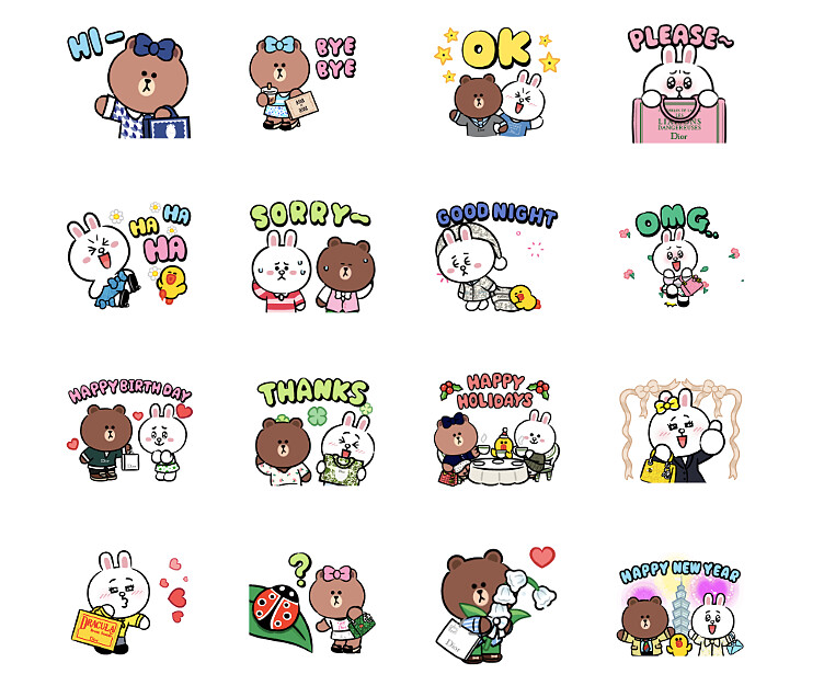 Dior在聖誕節前夕為大家送上了全新的LINE貼圖,這組貼圖靈感取自創意總監Jonathan Anderson執掌Dior後推出的首個夏季系列,Dior為LINE FRIENDS角色們都穿上新一季的時尚造型,搭配上生活化的常用詞,化身16款超萌動態貼圖登場,實用、時髦全都有!