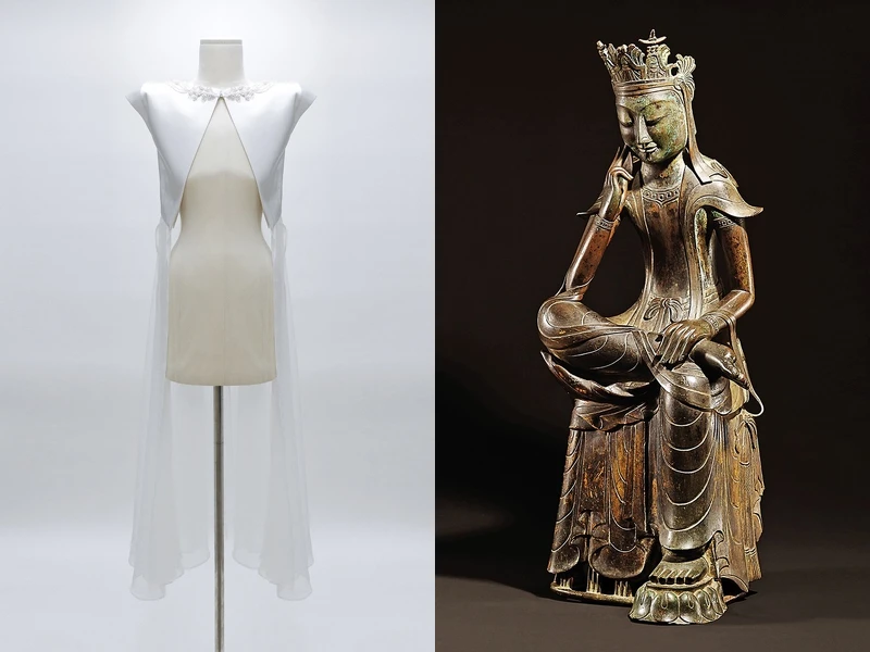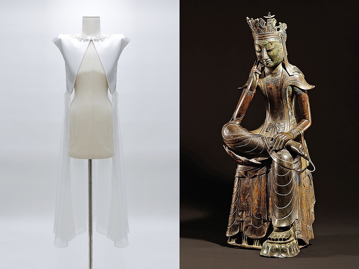 Jennie立刻換裝靈感汲取自韓國傳統《僧舞》(Seungmu)的造型,從飄逸的薄紗可以看出僧舞輕盈而莊重的意境,並透過肩線設計致敬韓國流行的佛像藝術半跏思惟像。