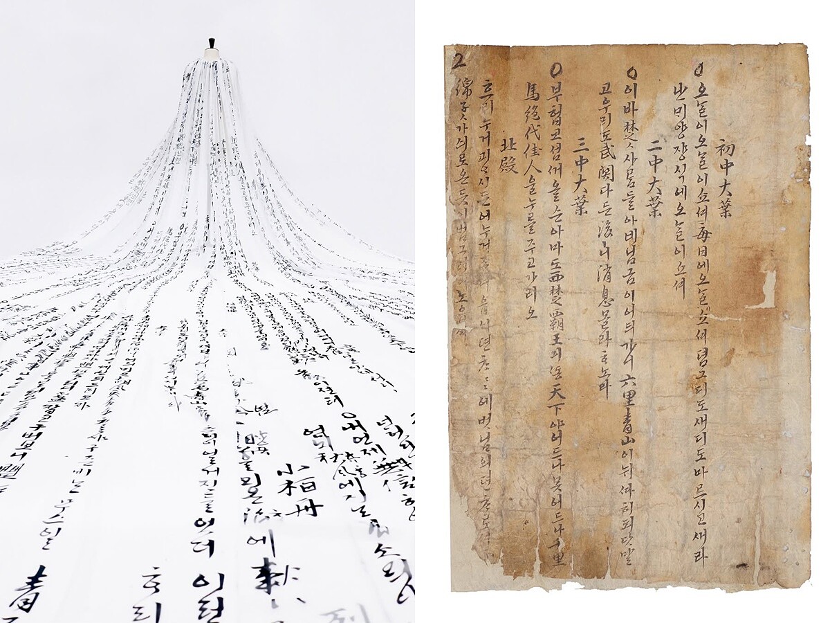 LEJE曾為Jennie多次訂製服裝,〈Seoul City〉MV中所穿的立體花卉馬甲正是LEJE的作品。MMA〈Seoul City〉演出時Jennie披上了由LEJE打造的15公尺白紗,上頭密密麻麻寫滿的韓文,究竟是寫了什麼呢?原來上頭寫的是朝鮮首部以諺文(韓文)而非漢字編纂的詩歌集《青丘永言》,藉此歌頌韓文的發明,讓歌謠、音樂得以透過民眾容易學習的文字被記載、傳承下來,並由站在高台上的Jennie,穿出了超壯觀的視覺效果。