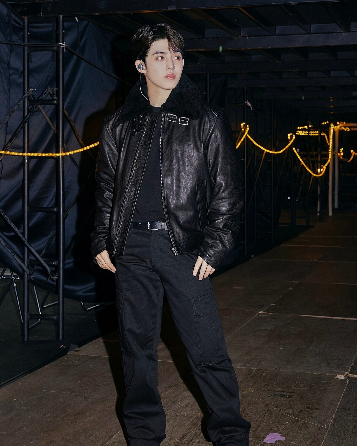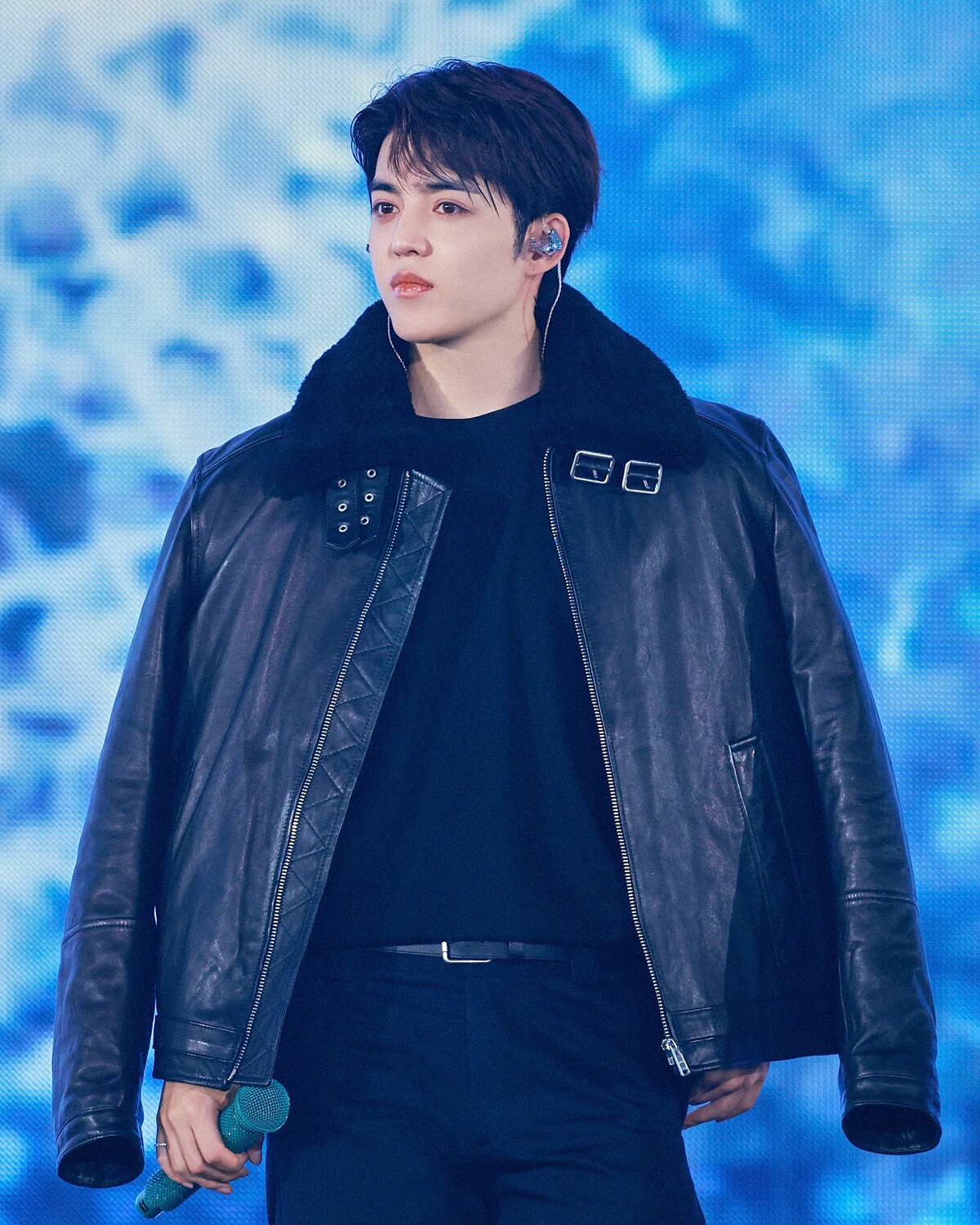 舞台上,崔勝哲身穿品牌標誌性的黑色羊毛翻領皮革夾克,內搭黑色 T 恤與工裝長褲,率性不羈的全黑造型不僅放大他的領袖氣場,也讓每一個眼神與動作更顯張力。隨著高能量演出與滿場燈海,他以自信姿態點燃現場氛圍,為福岡夜晚留下難忘瞬間!