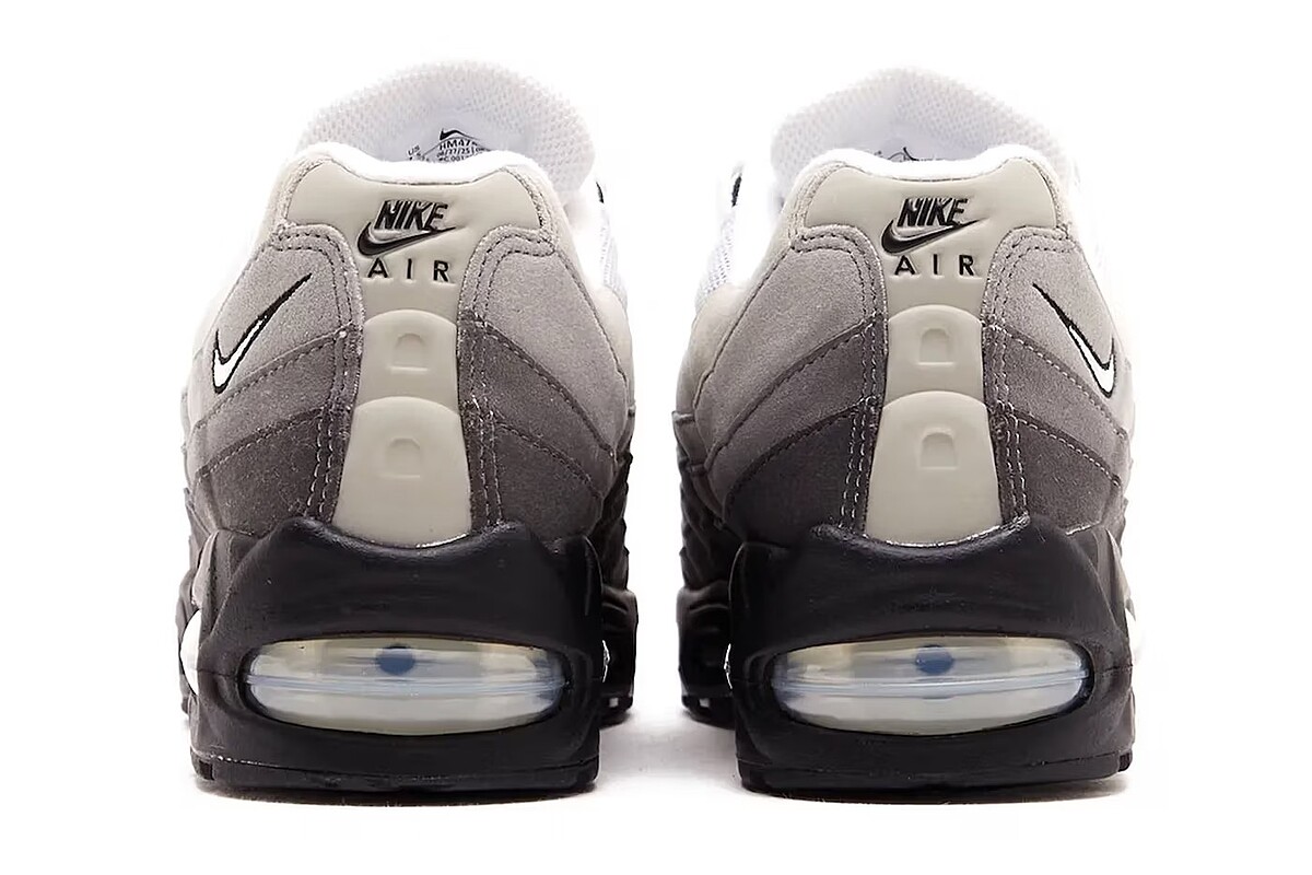 配色部分,「Granite」以冷調灰階為主軸,從深炭灰一路推進至鞋面網布的亮白色調,透過 Medium Ash 與 Dark Pewter 的交錯,營造出沈穩而富有層次的質感氛圍。最大亮點則落在 Big Bubble Air 氣墊的回歸,放大的可視氣墊不僅更貼近九○年代原始樣貌,也讓整體視覺更加銳利有型。搭配黑色中底與後跟白色 Swoosh 細節,這雙 Air Max 95 在復古、性能與當代穿搭之間,取得恰到好處的平衡。