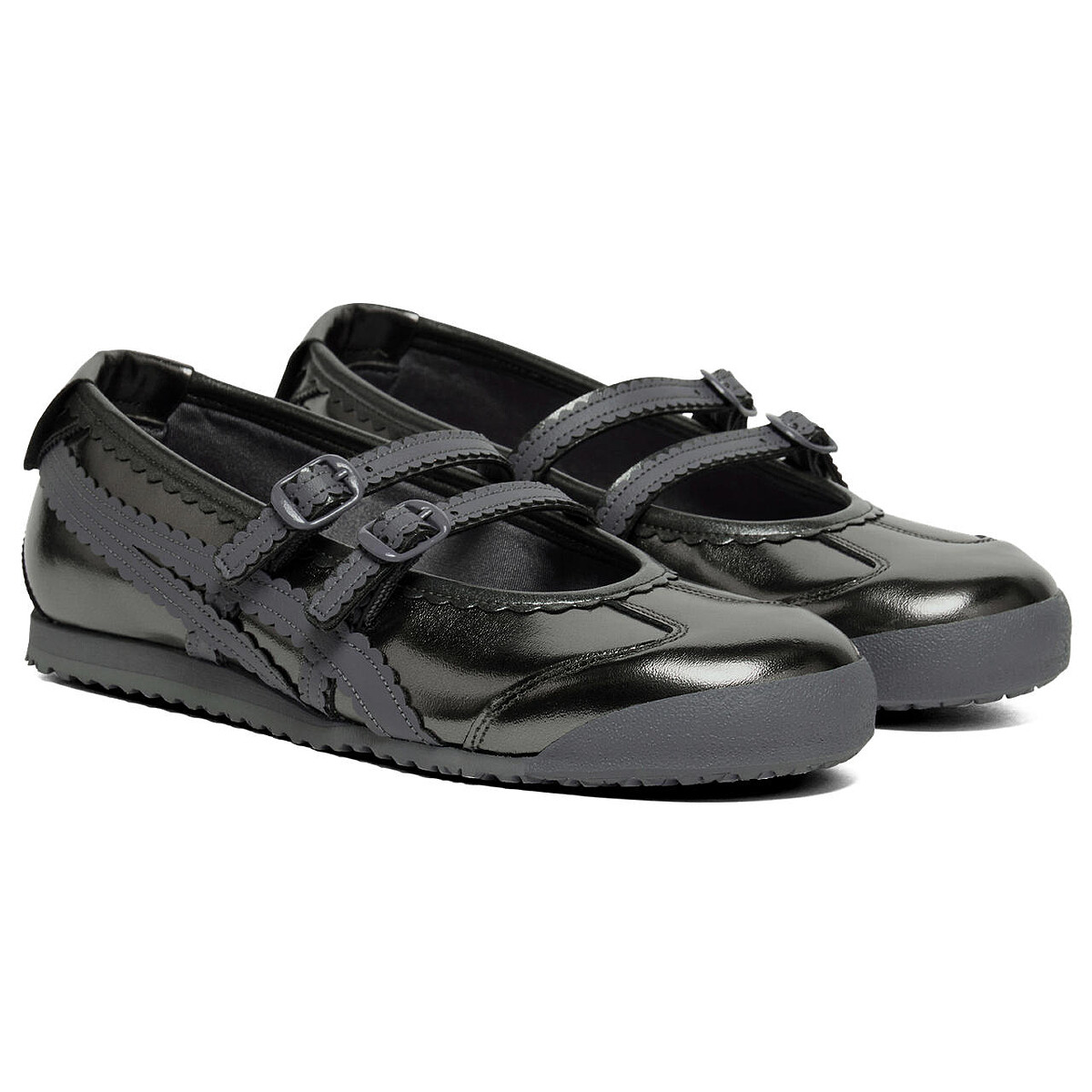 設計細節巧妙融入芭蕾舞鞋語言:細緻的皮革滾邊、柔和流暢的鞋身曲線,以及後跟交叉元素,皆在低調中堆疊出高級感。不同於傳統 Balletcore 的柔弱印象,MEXICO 66 TGRS 更像是一種力量與精緻並存的當代表述,成為今年日常造型中的關鍵單品。