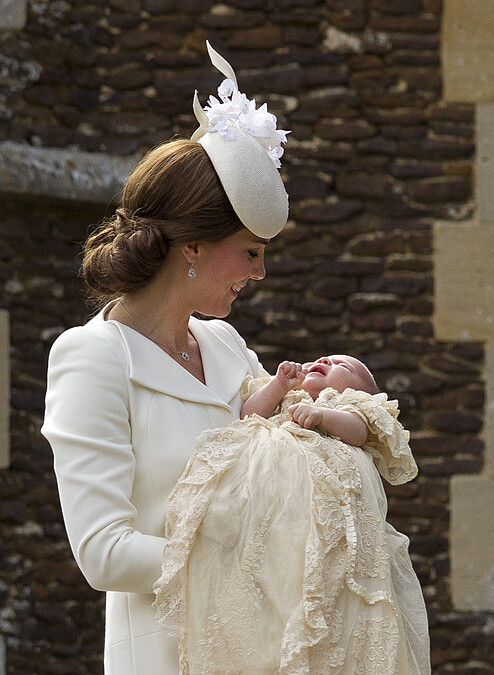 這是夏綠蒂公主首次被記錄的公開時刻。當時的他仍被凱特王妃悉心的抱在懷中,彼時身穿象牙白受洗長袍,充滿潔淨與神聖。而凱特王妃這日身穿一件白色套裝與帽飾,在莊重的氛圍下還是可以看見他充滿母愛的眼神與喜悅。