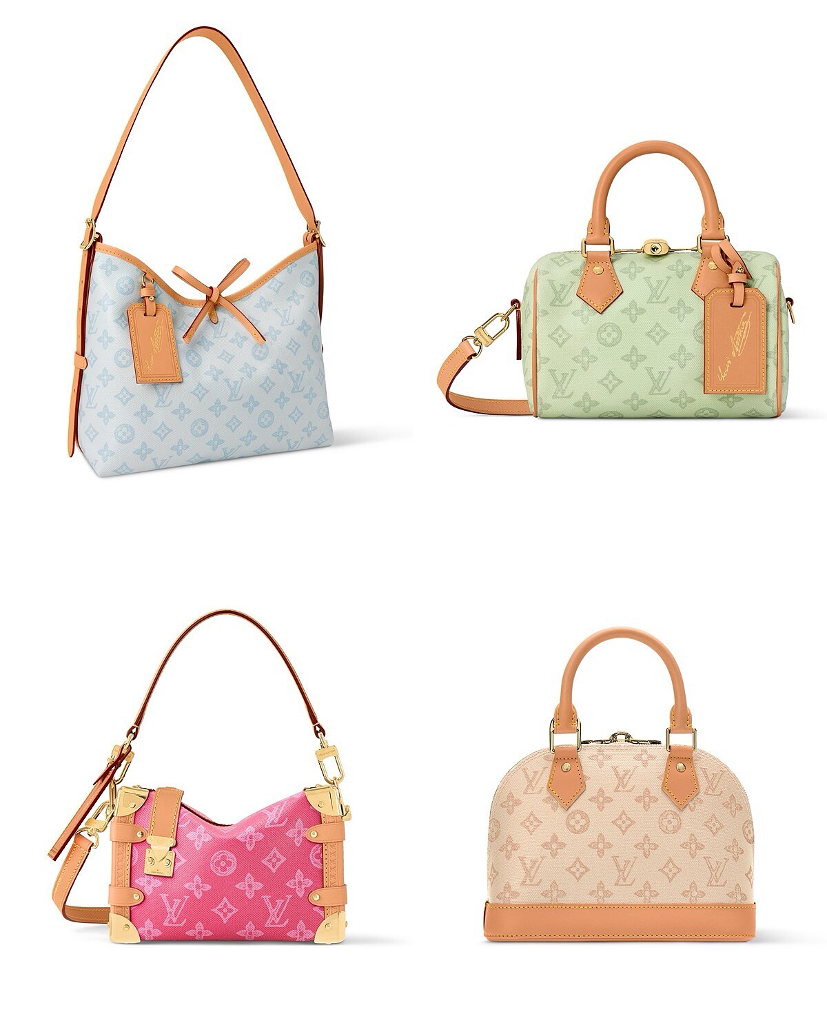 「Monogram Origine」系列使用的Monogram是否感覺不太一樣?因為這次的重點正是重現1896年的原始圖案,使用亞麻與棉混紡材質,重新詮釋傳統的緹花,並以柔和的粉彩色調呈現,設計靈感源自於品牌檔案中的客戶登記冊封面。