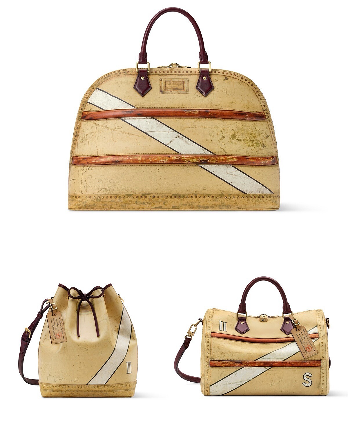 「Time Trunk」系列以大膽的錯視印花重現歷史旅行箱的質感和金屬細節,在軟皮革上呈現出傳統硬行李箱上的旅行痕跡,連生鏽、落漆的地方都能以假亂真,並透過一道道不規則的刮傷,串聯過去與現在。
