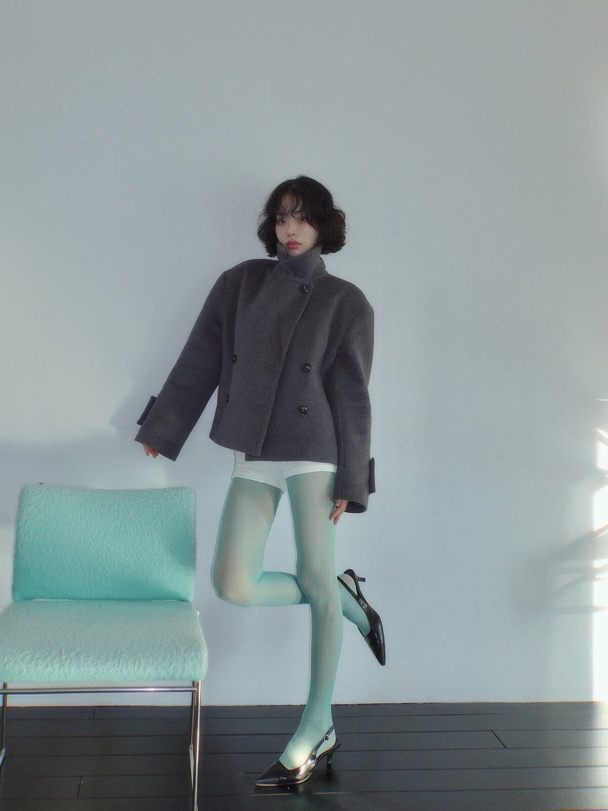 編輯私心最推薦「灰色褲襪」,比起黑色褲襪亮眼、卻同樣百搭,配上相同灰色系的大衣或西裝外套,低調又充滿高級感,適合作為精緻的職場造型,或是日常約會拍照行程,怎麼拍都很出片,是作為褲襪穿搭入門的首選!韓妞之間則相當流行「藍色褲襪」,從灰色調的低飽和藍色、寶寶藍色到克萊因藍,都值得褲襪穿搭進階班的同學們嘗試,