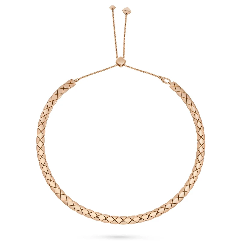 Jennie同款Coco Crush18K BEIGE 米色金菱格紋圖騰柔軟短項鍊。