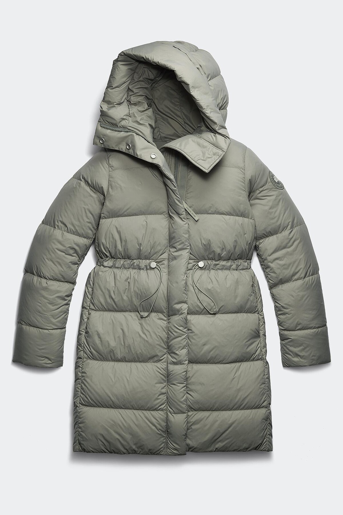 自 2014 年上市即成為品牌代表作之一,以加拿大城市 Shelburne 命名。將極地探險等級的抗寒科技,轉化為更修長、柔和的女性化線條。Recycled Organic Arctic Tech™ 面料兼顧防風保暖與乾爽舒適,在暴雪與寒風中依然維持優雅輪廓。