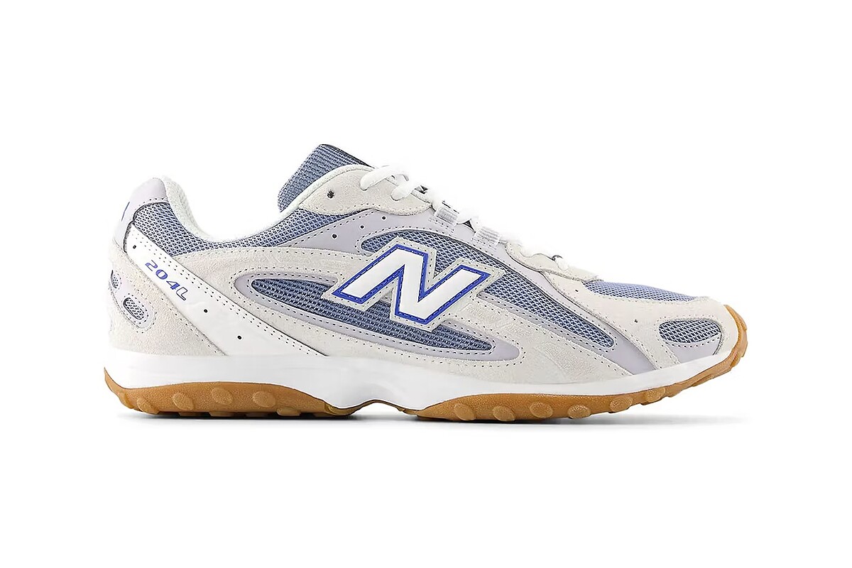 相較之下,204L 則採取反向配色策略,選用淡藍色網布作為鞋身主體,外層疊加白色與中性色麂皮,重新調整視覺重心。