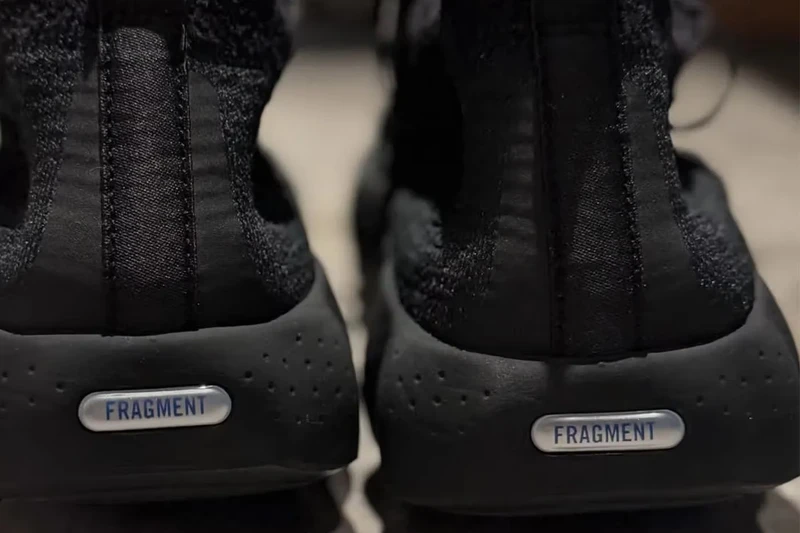 鞋面改採全黑 Flyknit 結構,帶來貼腳如襪的包覆感,中底側牆壓印「FRAGMENT CONCEPT TESTING」字樣,展現濃厚實驗室美學。