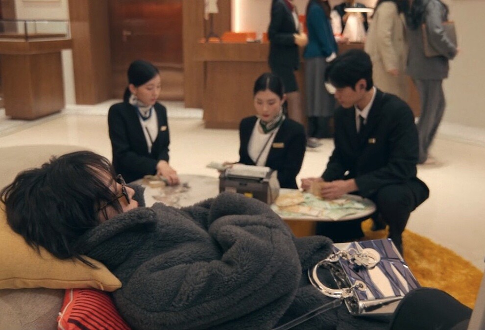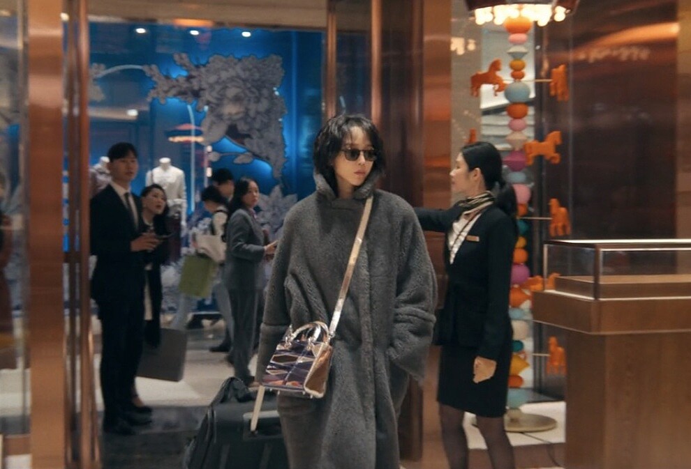 申惠善在劇中一身慵懶甚至有點邋遢的穿搭,大搖大擺拖著行李箱走進精品店時,身上背著的Lady Dior,並不是我們可以在店上看到的常規款式,而是出自Dior於2016年啟動的藝術家限量系列,這個企劃每年都會邀請全球的當代藝術家,將經典的Lady Dior手袋作為創作的載體,透過他們獨特的創作風格與視角重新詮釋,可以說是一件可以背在身上的藝術品,而申惠善在劇中配戴的包款並不是最新系列的創作,而是來自Lady art #2系列中,韓國藝術家 李昢(Lee Bul)的作品。