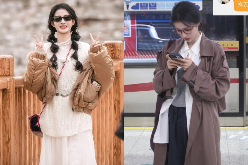 私下的王楚然也常以卡其色、咖啡色外套做層次堆疊,例如寬版風衣內搭襯衫與針織背心,或是短版棕色外套搭配長裙,她偏好大地色系,讓整體看起來穩定又柔和,就算是日常隨拍,也能因為顏色統一而顯得有質感,這種穿法很適合上班或通勤,只要挑對色系,就能自然散發氣質。