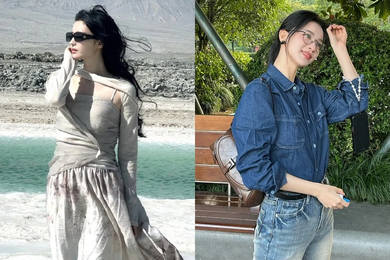 王楚然很常以短版上衣或純色上衣搭配高腰牛仔褲現身,像是黑色合身上衣配合身牛仔褲,或是黃色削肩背心搭配丹寧褲,都是最不費力卻很有精神的組合,她的關鍵在於「上短下長」比例拿捏得剛剛好,上身貼合身形,下身視覺自然拉長腿部線條,即使只是球鞋或平底鞋,也能保有清爽俐落的感覺。