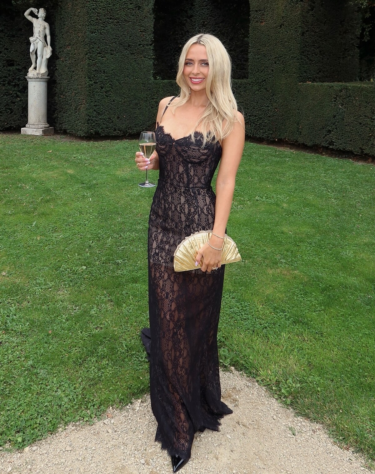 如果要說 Hanna 最成熟的一套造型,大概就是這套黑色蕾絲長洋裝,蕾絲材質本身帶有一點性感氛圍,但 Hanna 的搭配仍然保持簡潔,例如手拿包與細緻飾品,整體造型看起來優雅而不過分誇張。
