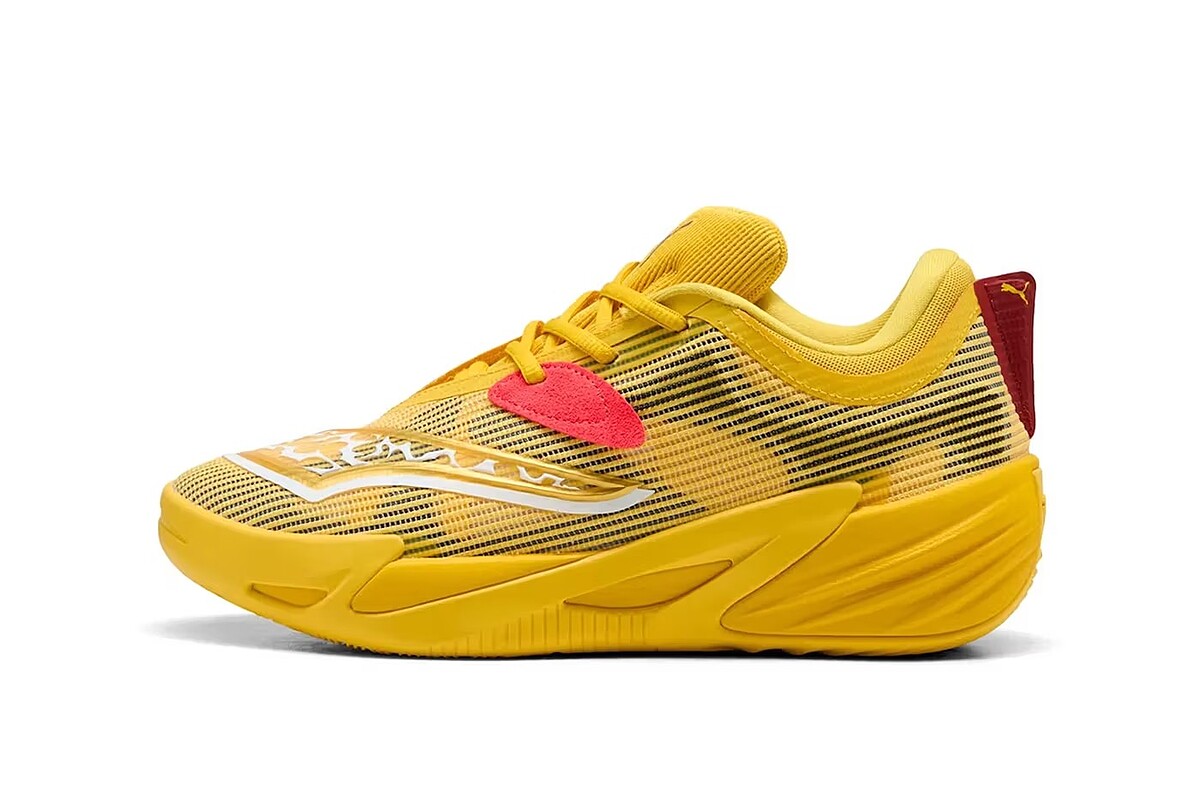 在去年 Mewtwo 主題鞋款大獲成功後,PUMA 再度攜手 Pokémon 推出全新聯名籃球鞋,主角正是人氣角色皮卡丘。此次合作以性能籃球鞋 PUMA All‑Pro Nitro 2 為基礎打造。鞋身以 Pikachu 招牌亮黃色為主調,搭配黑色細節與金屬感 PUMA formstrip,形成強烈對比。紅色麂皮鞋帶孔環與酒紅後跟設計,為整體增添層次與質感;鞋墊與後跟則點綴 Pikachu 圖樣與 Pokémon 標誌!
