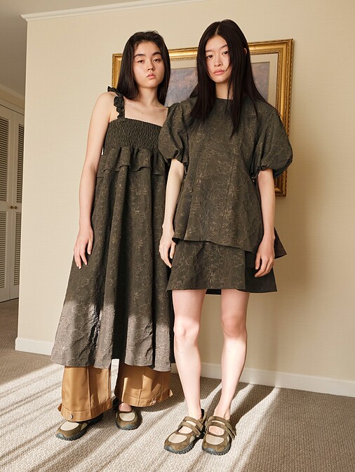 GU x ROKH本季大量運用了立體緹花布料,當中這件縮褶平口的連身裙,最能體現夏日的輕盈感了!肩帶上的荷葉邊設計是編輯最愛的小細節,不只可愛加分,還能提供滿滿的穩定性安全感,內搭任何單品也更有層次。