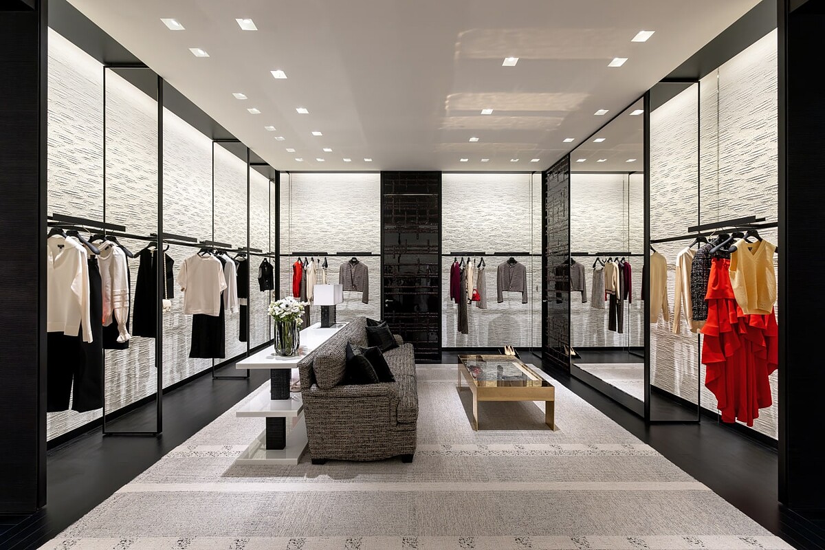 從外牆延伸至店內,靈感取自嘉柏麗香奈兒位於巴黎康朋街 31 號的傳奇寓所,藉由幾何線條將經典意象移植至此。店裝核心則以「家」為題,彷彿是一場來自香奈兒女士的親自邀約,從一樓至三樓,宛如從優雅客廳步入私密臥房,隨著空間層層遞進,帶領賓客揭開品牌的核心底蘊。