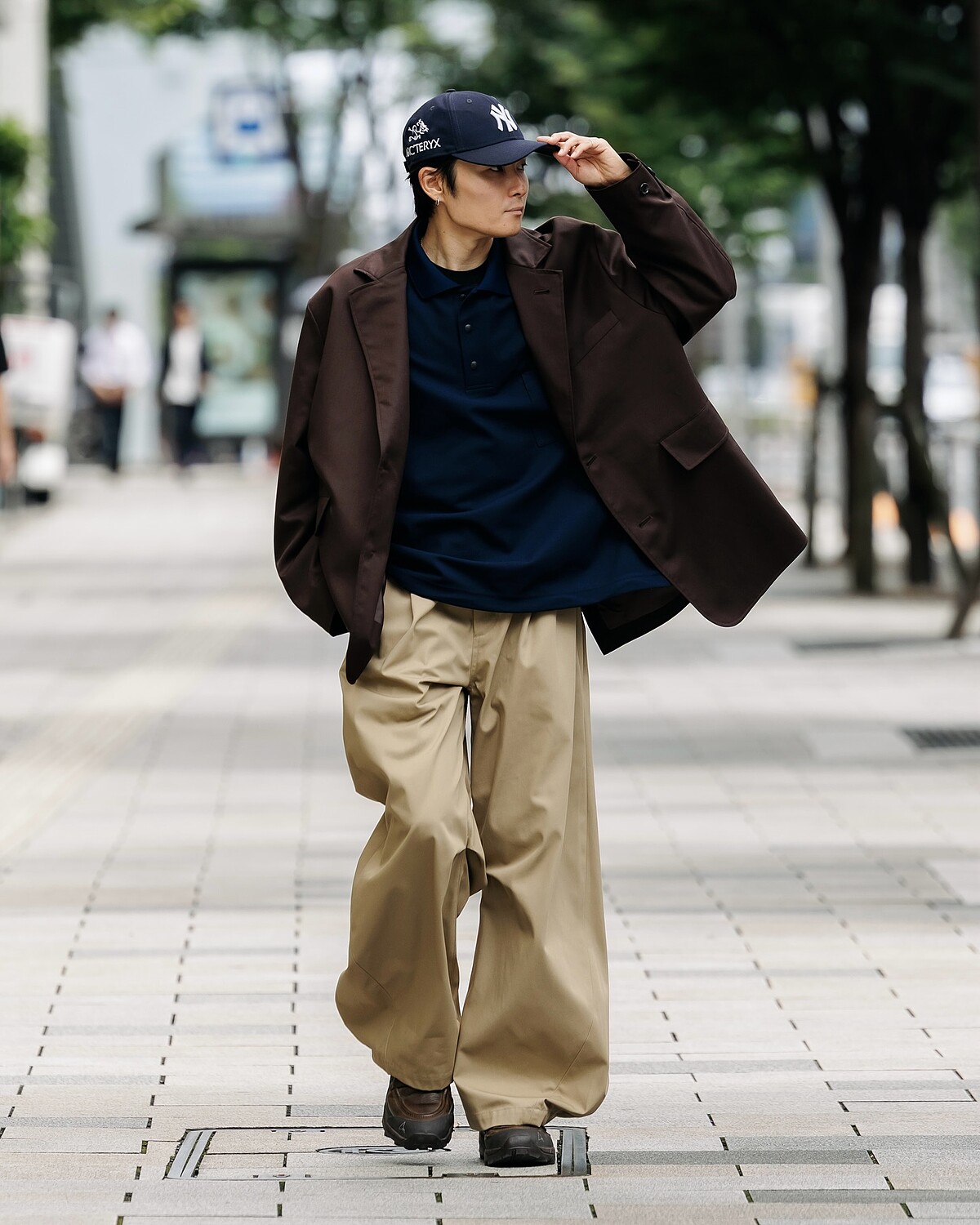 男生韓系風格穿搭範例1:短版外套+高腰西裝褲