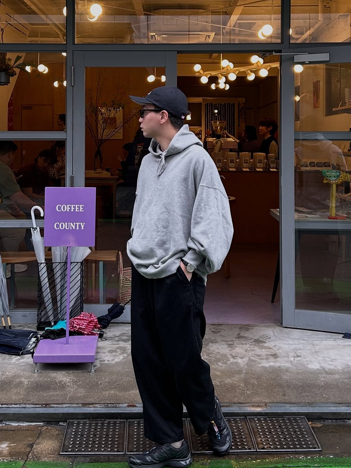 男生街頭風格穿搭範例1:Oversize帽T+寬褲