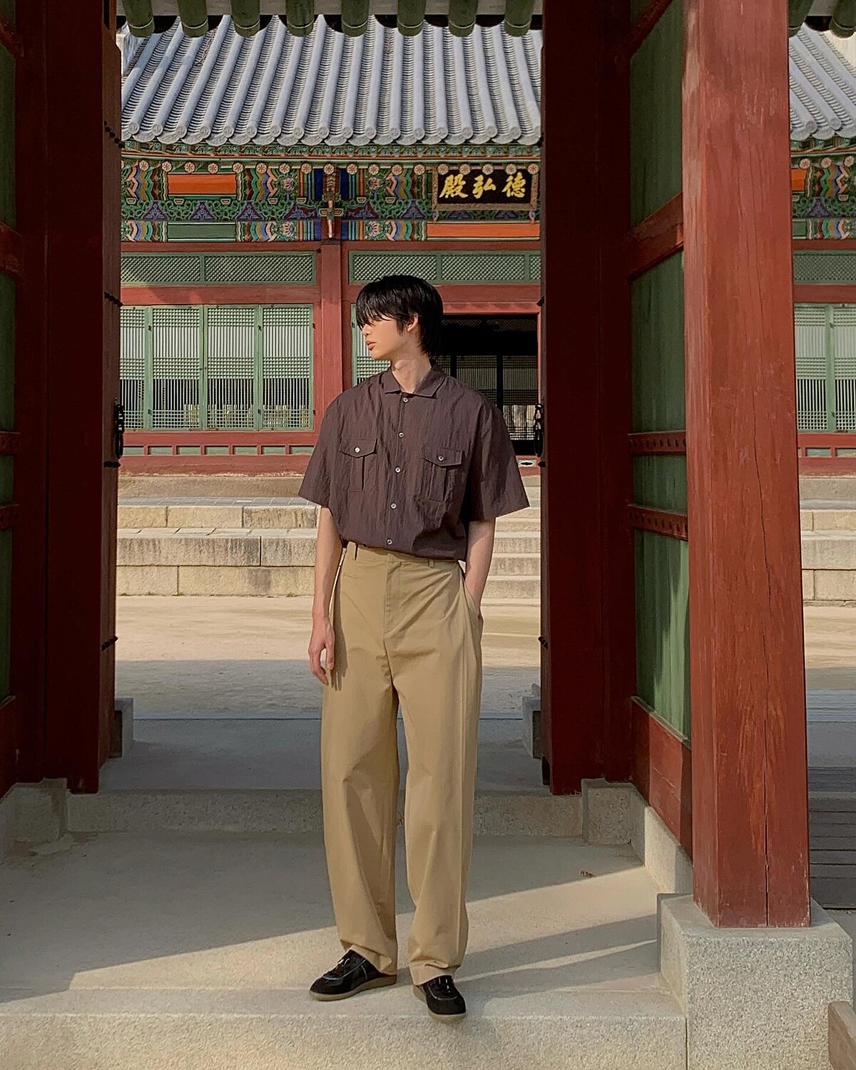 男生韓系風格穿搭範例2:襯衫紮褲+寬褲