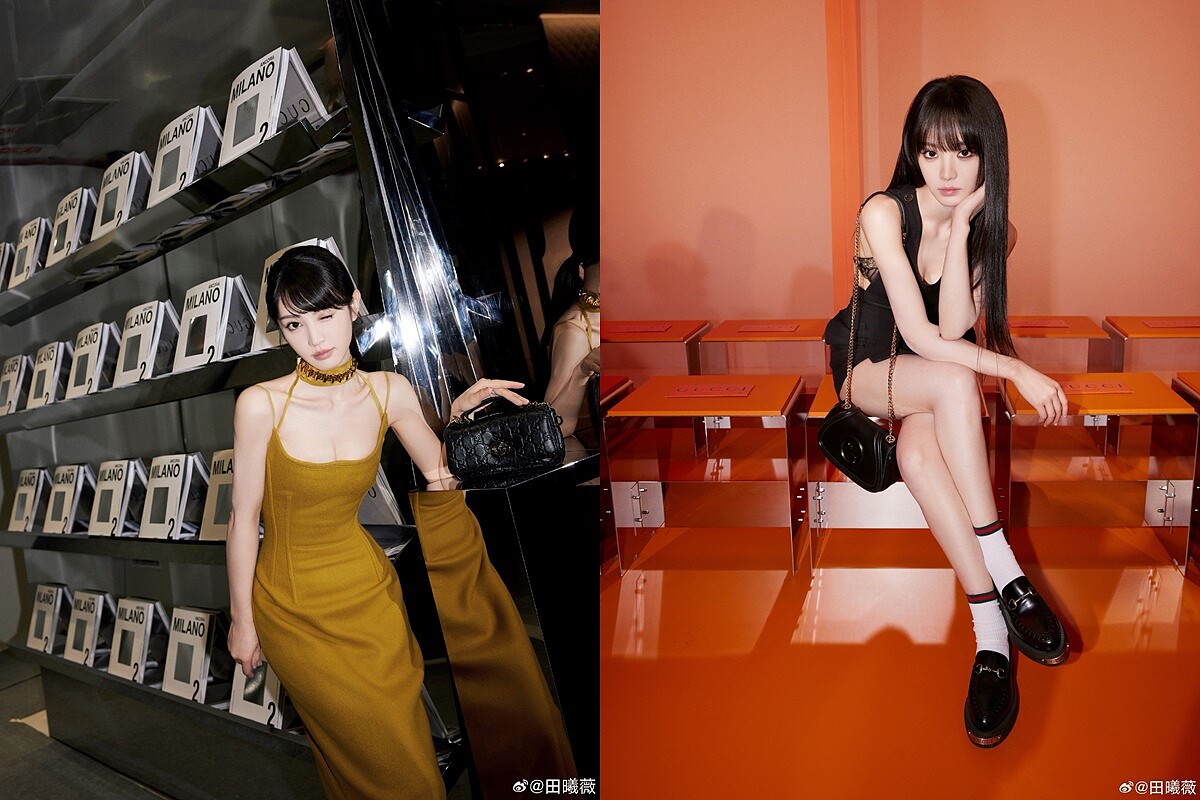 田曦薇與精品品牌Gucci 合作多年,多次受邀出席活動並擔綱演繹造型。當她換上Gucci的設計服裝,強大的氣場立刻顯現,那份「天使臉孔與魔鬼身材」的極致反差,更讓她徹底擺脫過往的稚氣,蛻變為冷艷成熟的時尚指標。