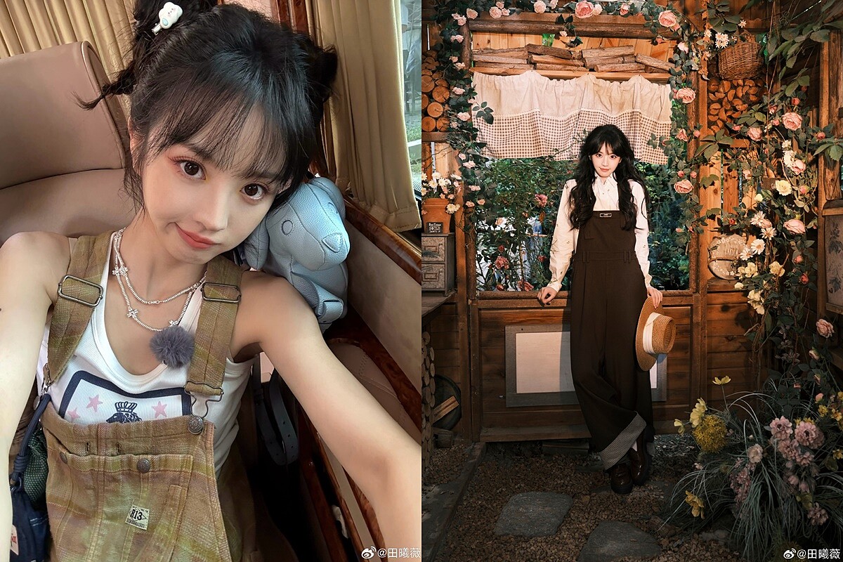 一件田園風格的吊帶褲,便能喚回田曦薇招牌的青春與可愛。略帶中性寬鬆剪裁的吊帶褲裝,配上田曦薇又大又圓的眼睛,更能襯托她靈動的少女感。