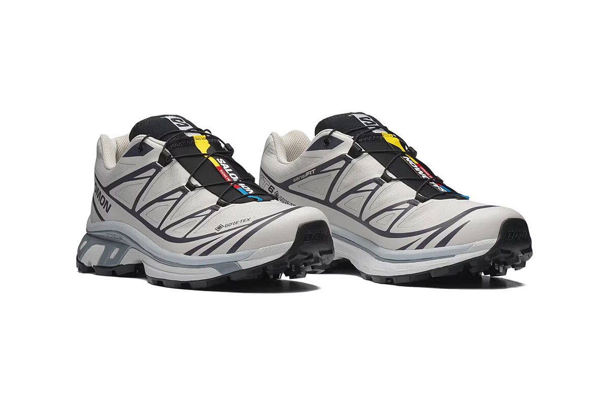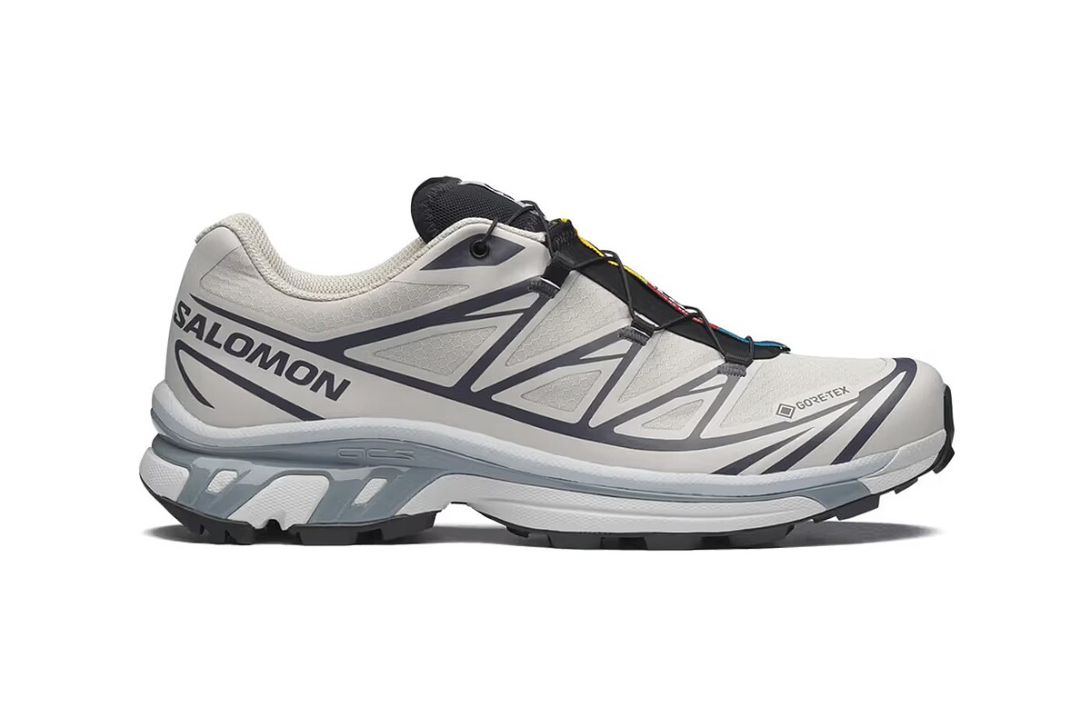 XT-6 GORE-TEX 延續經典輪廓,升級搭載 ePE GORE-TEX 薄膜,在維持透氣性的同時提供更環保的防水保護。鞋面以高耐磨網布結合 SensiFit™ 結構,從中底延伸至 Quicklace™ 系統,帶來穩定貼合的包覆感。以「Silver Cloud」為主調,融入黑色區塊與「Pearl Blue」細節,呈現低調而精準的機能美學。腳下則配置雙密度 EVA 與 Agile Chassis System,在穩定與緩震之間取得平衡,從城市柏油到戶外地形皆能從容應對。