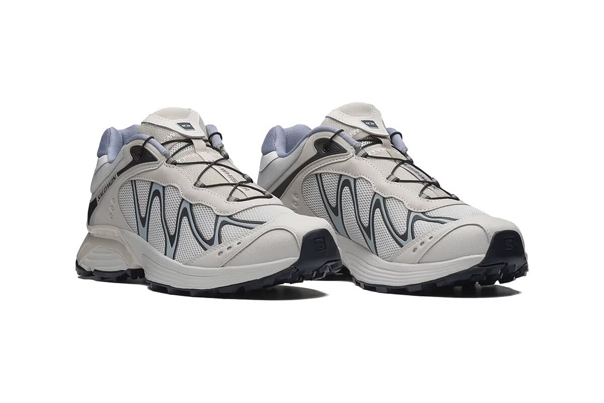 XT-WHISPER 則以更修長流線的姿態,詮釋輕盈機能。鞋面透過網布與合成覆片層層堆疊,並以波浪狀 SensiFit™ 籠架強化足弓支撐,提升整體穩定性。厚實鞋舌結合 Quicklace™ 系統,讓穿脫與調整更為直覺。配色以「Lunar Rock」與「Silver Cloud」為基底,點綴柔和「Pearl Blue」,展現細緻層次。搭配雕塑感中底與侵略性外底刻紋,在回彈、抓地與靈活度之間取得平衡,適應多場景移動節奏!